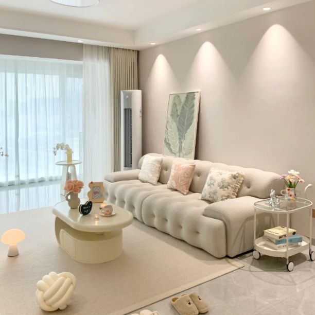 若是偏爱冷静与故事感,不妨回想《蓝》或某些北欧影片中的场景。那是一种“深海与雾”的组合:灰蓝色的墙面如同静谧的海面,搭配大量米白或浅灰的棉质沙发、羊毛盖毯。亚麻窗帘能柔化刺眼的光线,让室内弥漫着均匀柔和的微光。这里运用的原理是“同色系的层次”,就像素描中的明暗关系,靠深浅与质感拉开距离。你可以尝试在书房一角实践:一面灰蓝墙,一个米白书架,一盏暖光阅读灯,便围合出一个能让人瞬间沉静下来的思考角落。
