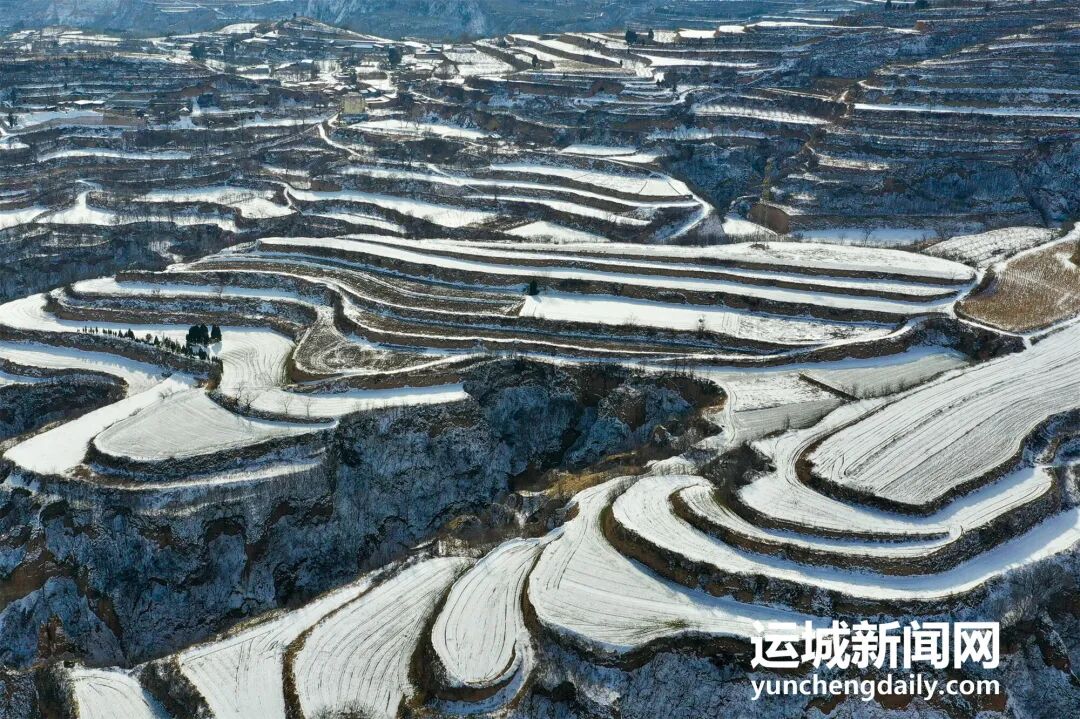 1月21日,雪后初霁,平陆县境内,层层叠叠的梯田被白雪轻覆,勾勒出灵动轮廓,与错落有致的民居相映成趣,宛如一幅水墨画卷。摄影:郝健