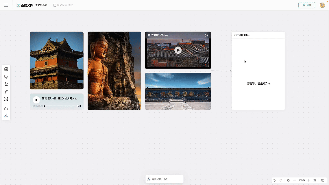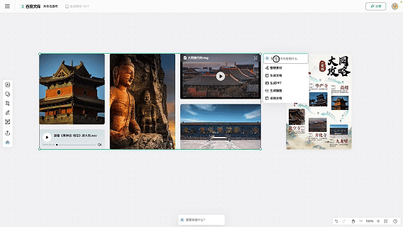 在过去,当你需要处理文档时,你会选择使用Word或WPS;制作PPT时,你会依赖PowerPoint;编辑图片时,你会求助于PhotoShop;而剪辑视频时,你可能会使用剪映……但在AI时代,百度向你展示,所有这些任务,只需一个工具——“自由画布”即可完成。