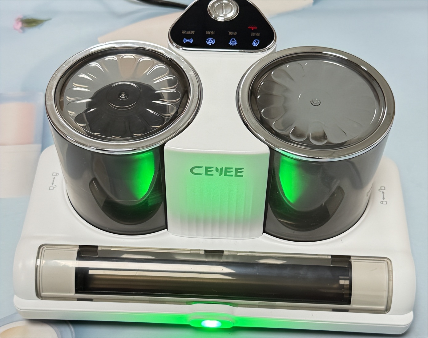 · 使用体验+适配性:除螨仪哪款性价比最高适合家用?机身仅1.6kg,女生单手操作无压力,底部滚轮设计推动顺滑。4米电源线可覆盖整张床垫,无需频繁更换插座;500ml双杯分离尘盒容量充足,卡扣式开合设计清理便捷,储尘仓内置小刷子可轻松处理滚刷毛发。整机通过欧盟CE、美国FCC及卫健委消字号认证,安全性能拉满,支持三年质保。