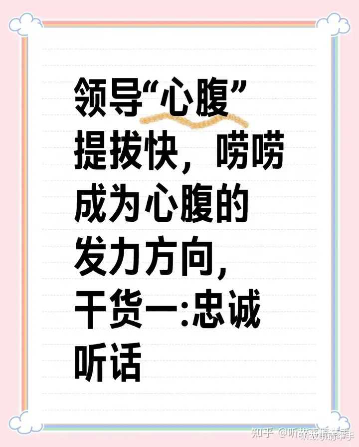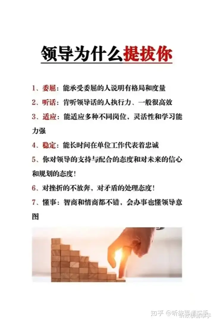 所以你虽然一直在部门坚守,甚至你自认为自己的经验很足,是最了解部门内部事务的人,但是这没有用,因为你的新领导不了解你,他不确定你是不是足够忠诚,所以被提拔的也不可能是你。