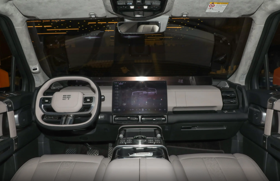 内饰用料和做工符合自身豪华定位,大面积皮质包裹和车顶的翻毛皮材质让人挑不出毛病,除此之外还有象征越野身份的元素,比如说粗犷的外露式把手以及专属标识。车内烙印了很多珠穆朗玛峰等高线的纹理,看起来很高档,传统换挡区域保留大量实体物理按键,用于调节驾驶模式的旋钮还加入水晶材质,真正做到兼顾美观性和实用性。下方镂空面板内还设计了三个香薰装置,基本上大家能想到的配置都配备了。