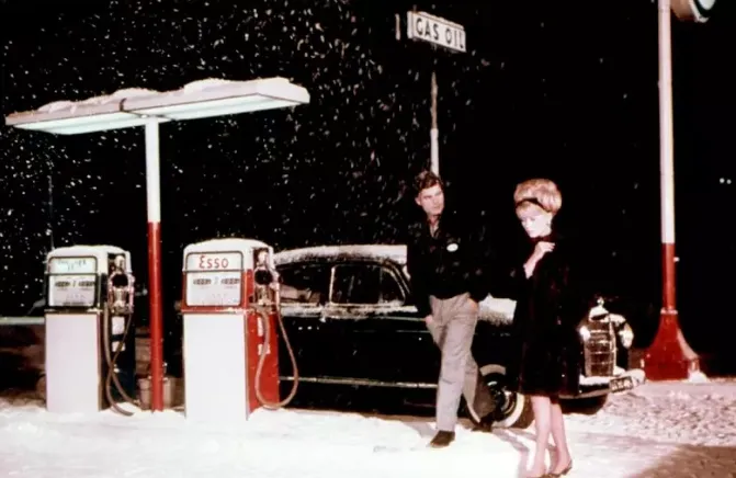 《瑟堡的雨伞》讲述的是一个错过的故事,这个故事在现实生活中发生了,在电影中同样没有迎来美好的结局,或者说这种结局并不是观众们想要看到的。詹尼薇和盖伊是一对情侣,然而现实却并没有将美好的未来送给他们。詹尼薇的母亲并不愿意将自己的女儿嫁给这个普通人盖伊,而盖伊除了没有办法打动詹尼薇的母亲,他还要面临一种困境,自己即将去服役,两年的服役使得这对热恋的情侣不得不忍受分离的痛苦,然而分别的时候,詹尼薇信誓旦旦的要等盖伊回来,因为她的肚子里已经有了爱情的结晶。