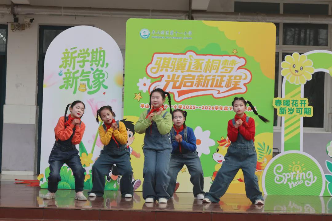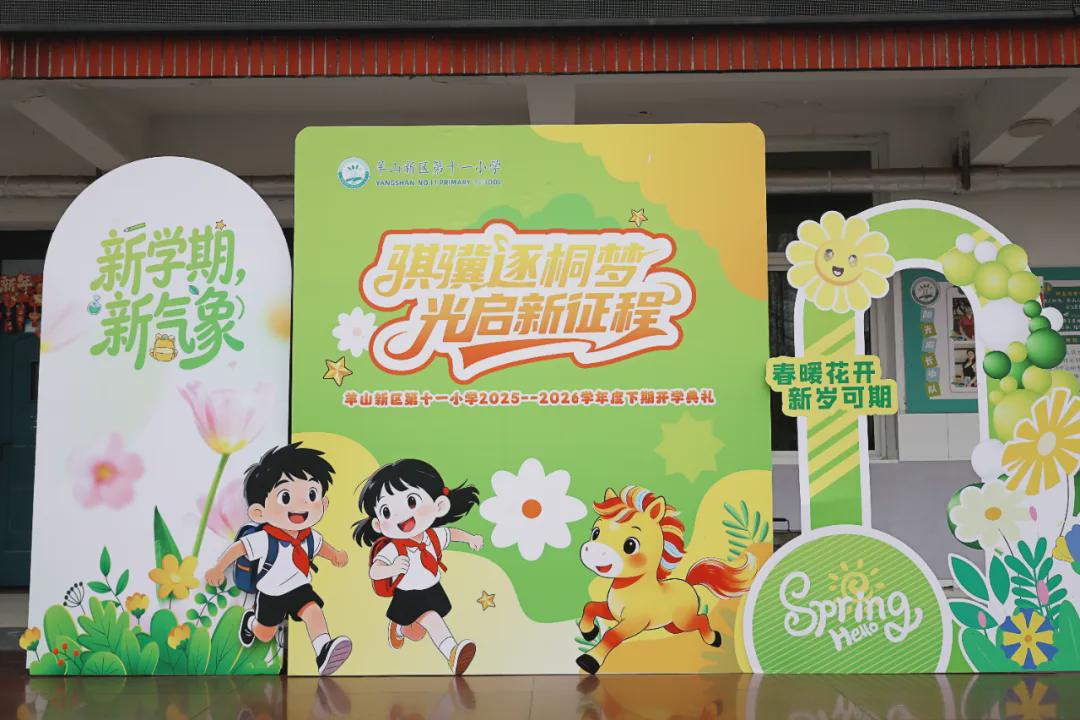 三月暖阳,桐园新绿,信阳市羊山新区第十一小学全体师生齐聚校园,举行春季开学典礼,以昂扬姿态开启新学期的征程。