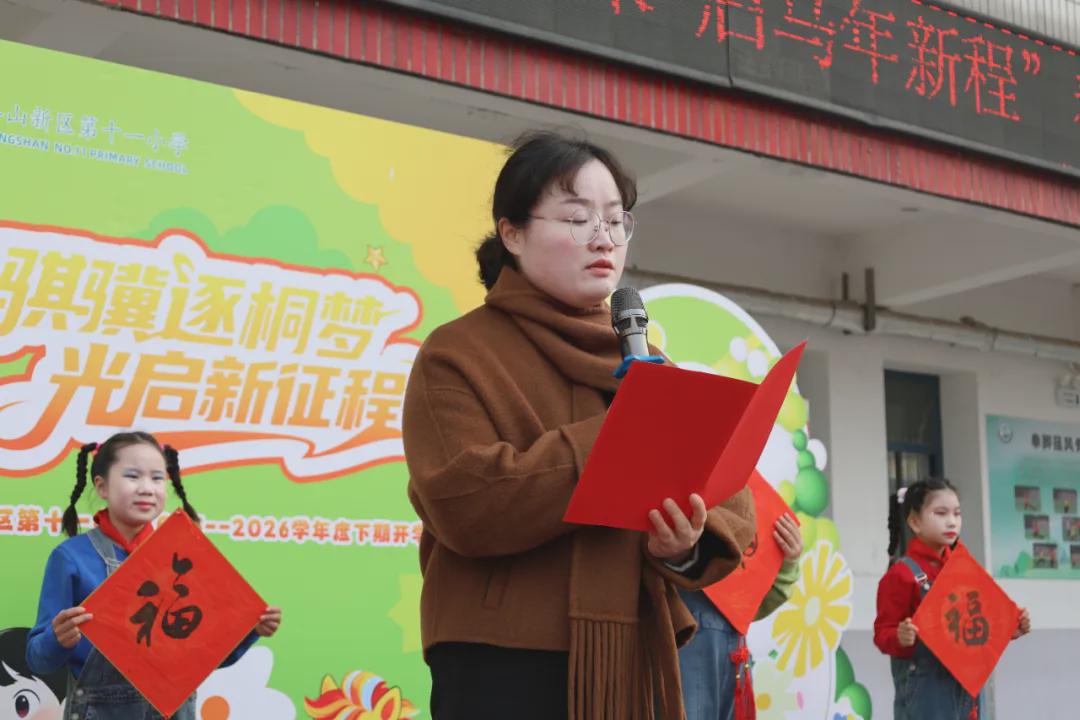 优秀教师代表刁书霞在发言中,结合马年寓意,希望同学们在新学期做心中有梦的“千里马”、以汗浇梦的“拓荒马”、传递温暖的“暖心马”、向阳而生的“健康马”,脚踏实地,逐梦前行。