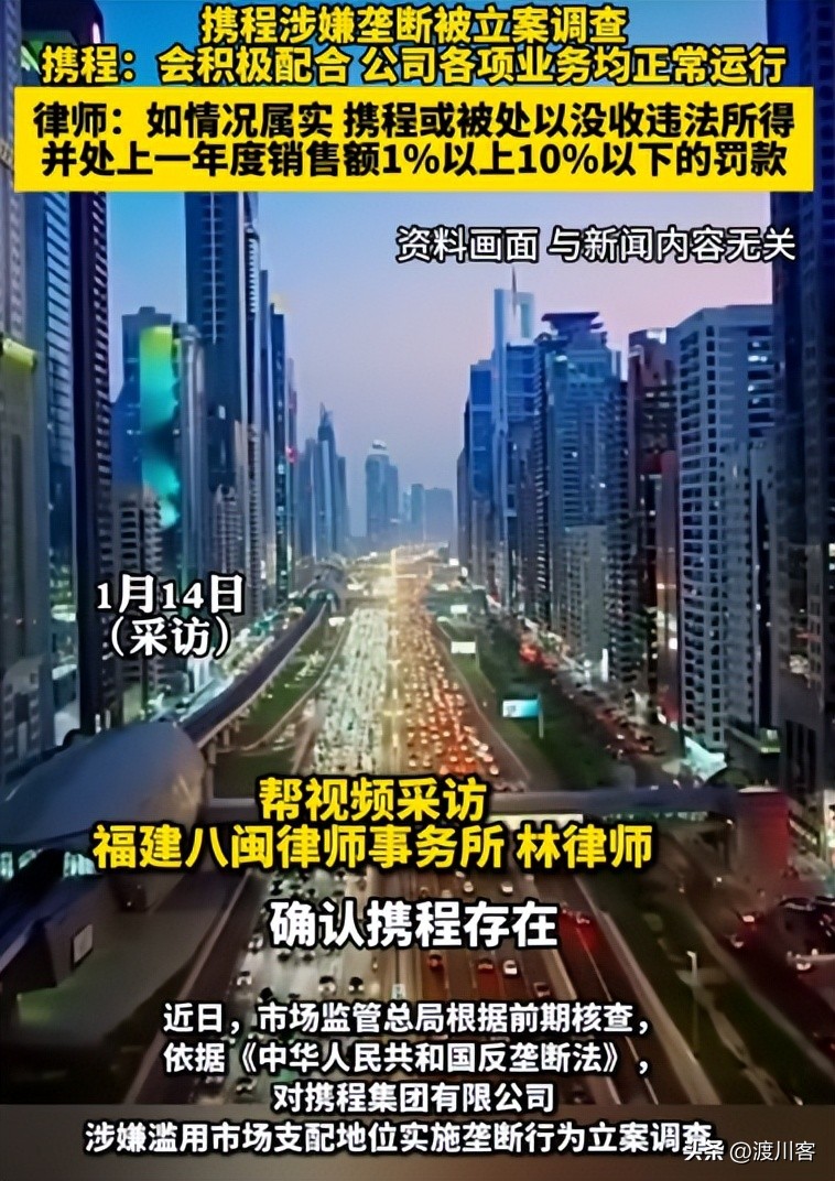 2026年1月14日,国家市场监督管理总局根据前期核查结果,依据《中华人民共和国反垄断法》,正式对携程集团有限公司涉嫌滥用市场支配地位实施垄断行为立案调查。