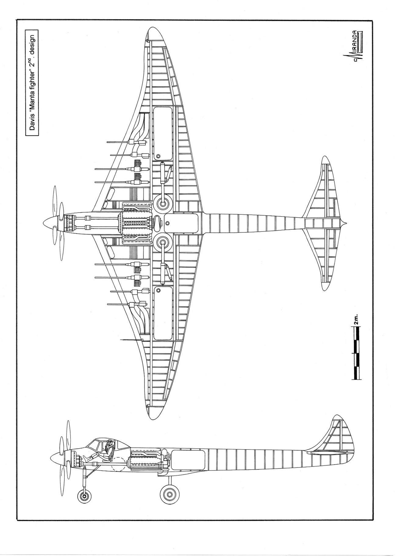 驾驶舱位于机翼前端同样融合在机翼内,武器为翼根内置的四门 20 毫米西班牙 M1 机炮。戴维斯在1940年向陆军航空队推出这一版本的设计,作为远程护航战斗机,以发挥其巨大的航程优势。这架飞机翼展:4.94 米,长度:10.08 米,高度:2.77 米,机翼面积:37 平方米。预期航程可达5,600 公里。