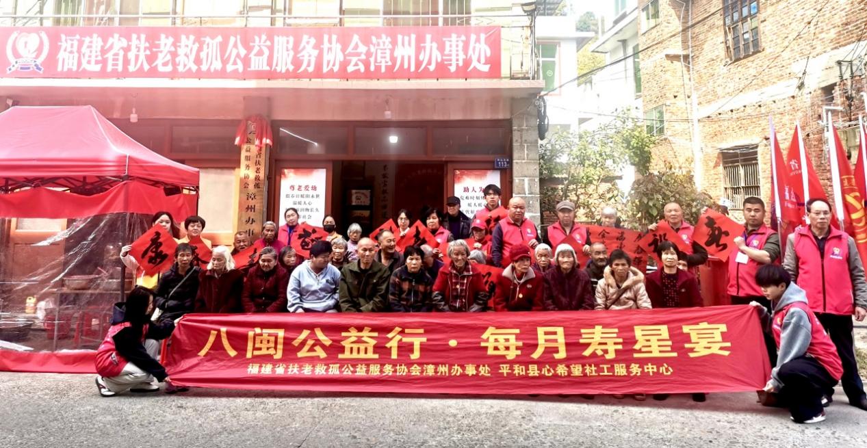 新春将至,暖意先行。1月29日,福建省扶老救孤公益服务协会公益项目“每月寿星宴”第16期活动,在该协会漳州办事处联合平和县心希望社工服务中心的共同牵头下,于平和县九峰镇温情举办。活动以关爱老年群体为核心,用贴心服务与真挚陪伴传递温暖力量,传承中华民族尊老爱幼的传统美德,为构建和谐乡村、温暖社会注入公益暖流。