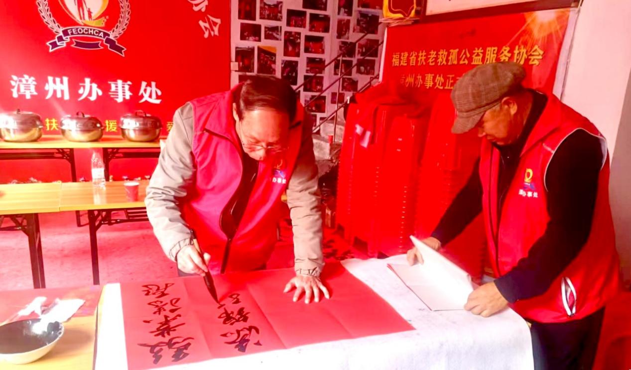 公益同行,爱心汇聚。福建省扶老救孤公益服务协会副会长、漳州办事处主任曾新龙,副秘书长尚碧,志愿者管理委员曾木椿、曾文海亲临现场,统筹推进活动开展;平和县九峰镇民政办赖志平,平和县心希望社工服务中心理事长杨素筝及社工洪端、林彩霞全程参与,细致做好服务保障;书法家朱金耀、曾祥涛,理发师王达泉主动投身志愿行列,用专业所长为老人们送上关怀,众多爱心人士携手,让活动充满温情与力量。