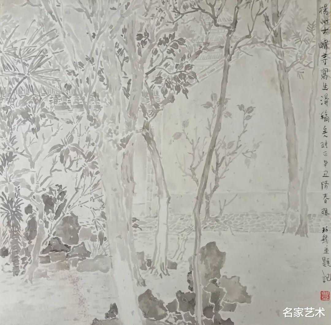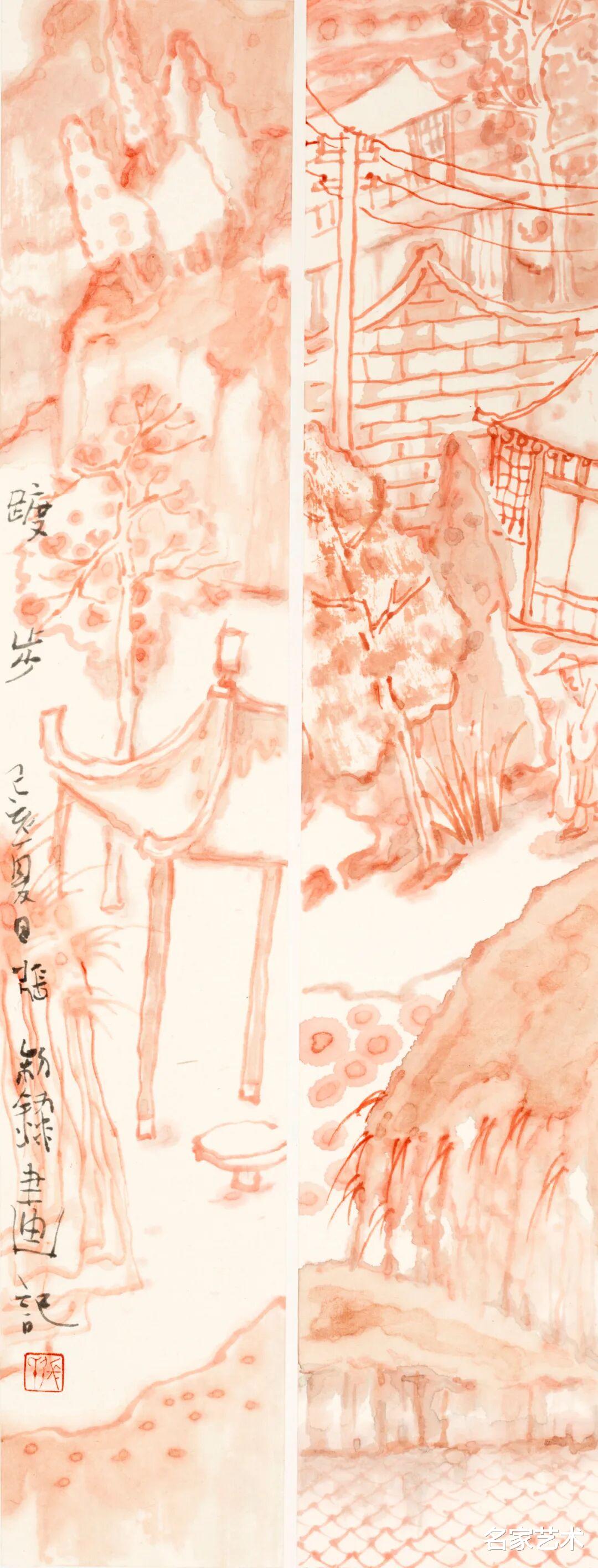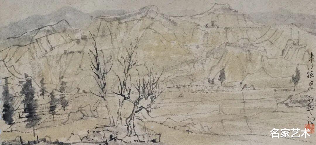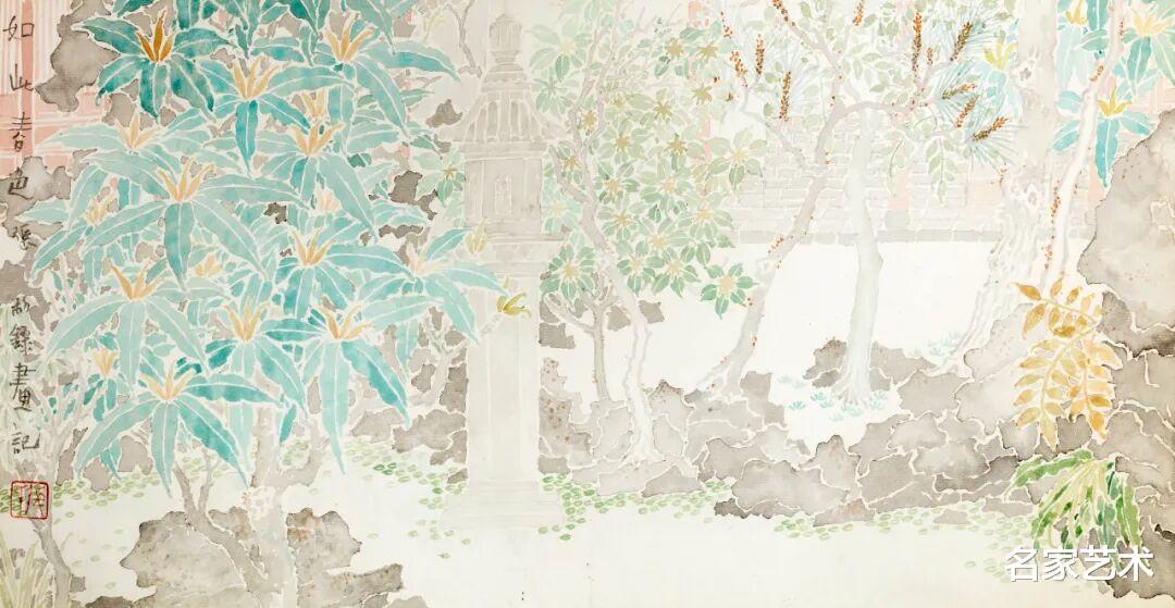 在墨色探索上,尤以淡墨运用精妙。他降低墨色浓度却强化皴染变化,强调书法用笔,画面清新雅致,活力四射;在色彩运用上也是力求清淡,避开强烈的对比色,以同类色和间色为主,呈现出一种别样的的色彩张力。画面中好似有光,好似有风。在他独有的笔墨和色彩感受中给我们呈现的是一种简淡与绚烂并存的美学理念,传递出生命哲思与诗意栖居的理想。