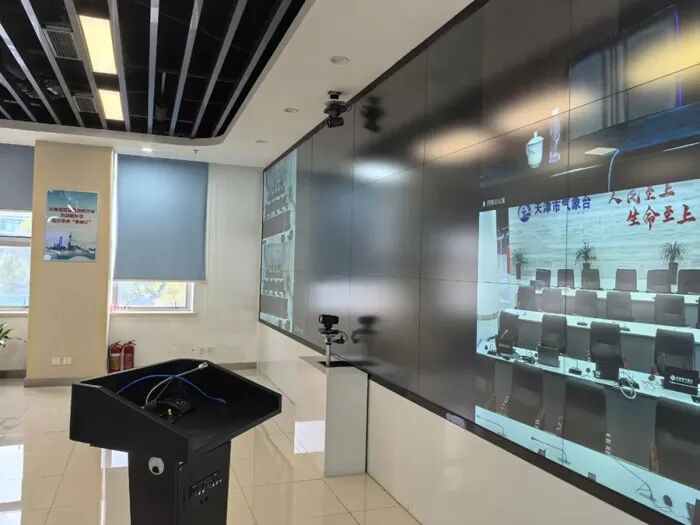 在海河流域防汛应急中,气象会商的效率直接关系到预报预警的速度与精度。天津市气象局曾长期面临三大痛点: 跨区域信号传输时,卫星云图、雷达回波等4K高清数据易失真,云系纹理、降雨梯度等关键细节模糊;多会商室联动时,信号切换繁琐,国家局与区局的会商画面常出现延迟;系统扩容受限,新增区县会商点需重构硬件链路,难以快速响应联防范围扩大的需求,且传统设备布线复杂、能耗高,占用过多机房空间。