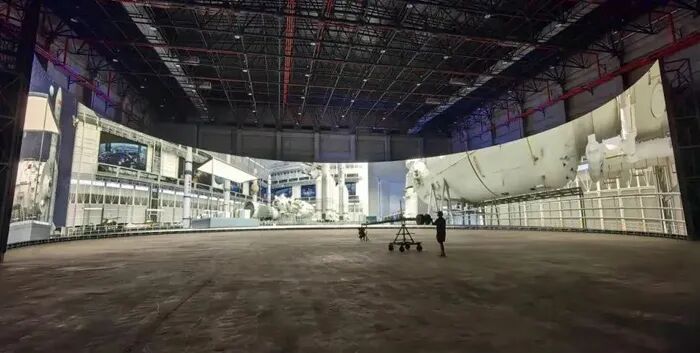 该影棚以270°环幕形态呈现,径达50米,高度12米,总面积5000㎡,LED屏幕面积达1700㎡(相当于4个标准篮球场),并以超6亿像素的超高分辨率刷新全球单屏像素点数量纪录。