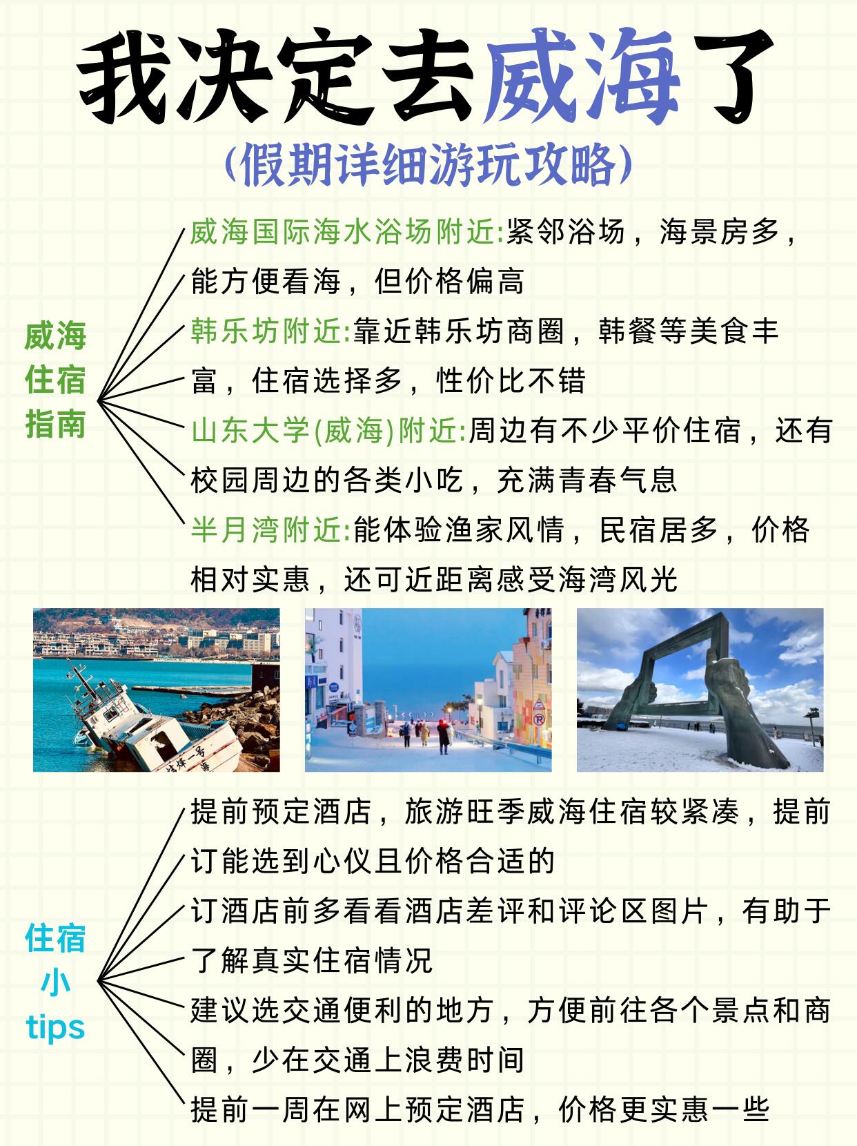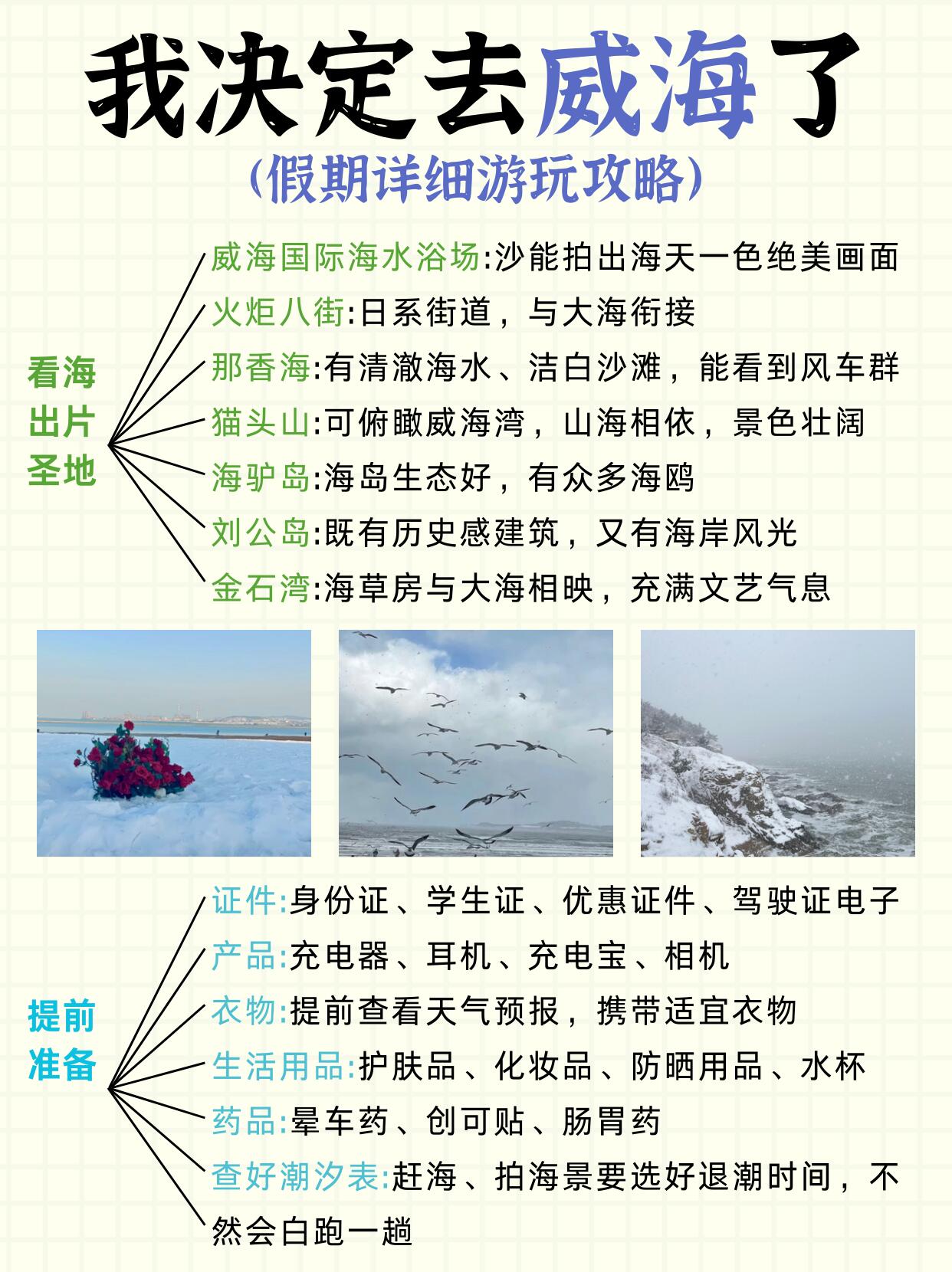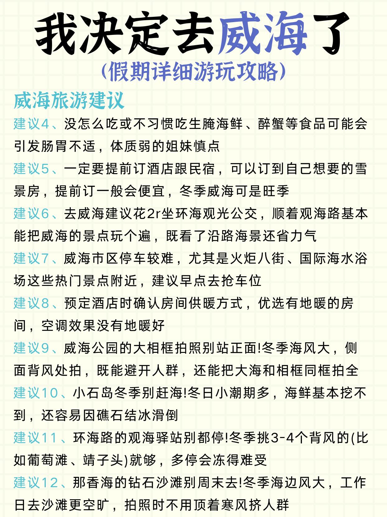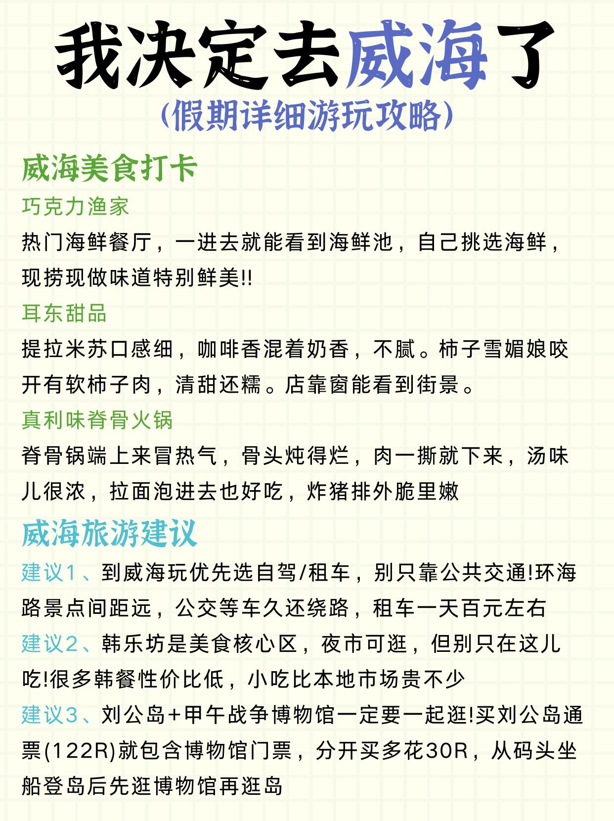 闺蜜说放假去威海提前做攻略真的能省一半心‼主打的就是一个听话😋,连夜刷了很多攻略,一边看一边记录,花了几天时间才把资料都整理好,出发的时候就带着我的攻略去玩,果然很🆗!