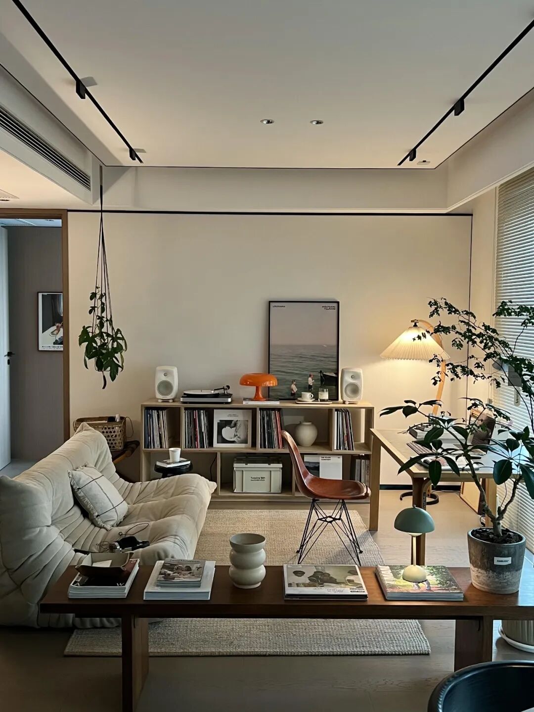 这种布局的精髓在于 “灵活”。空间不被任何家具定义,想怎么变就怎么变。