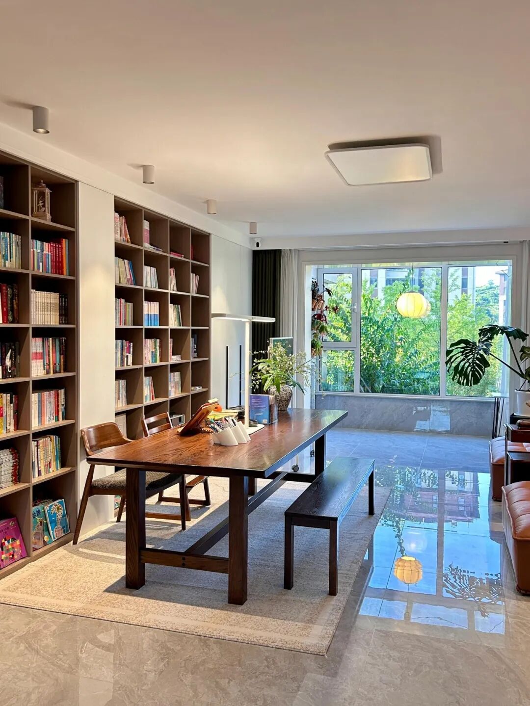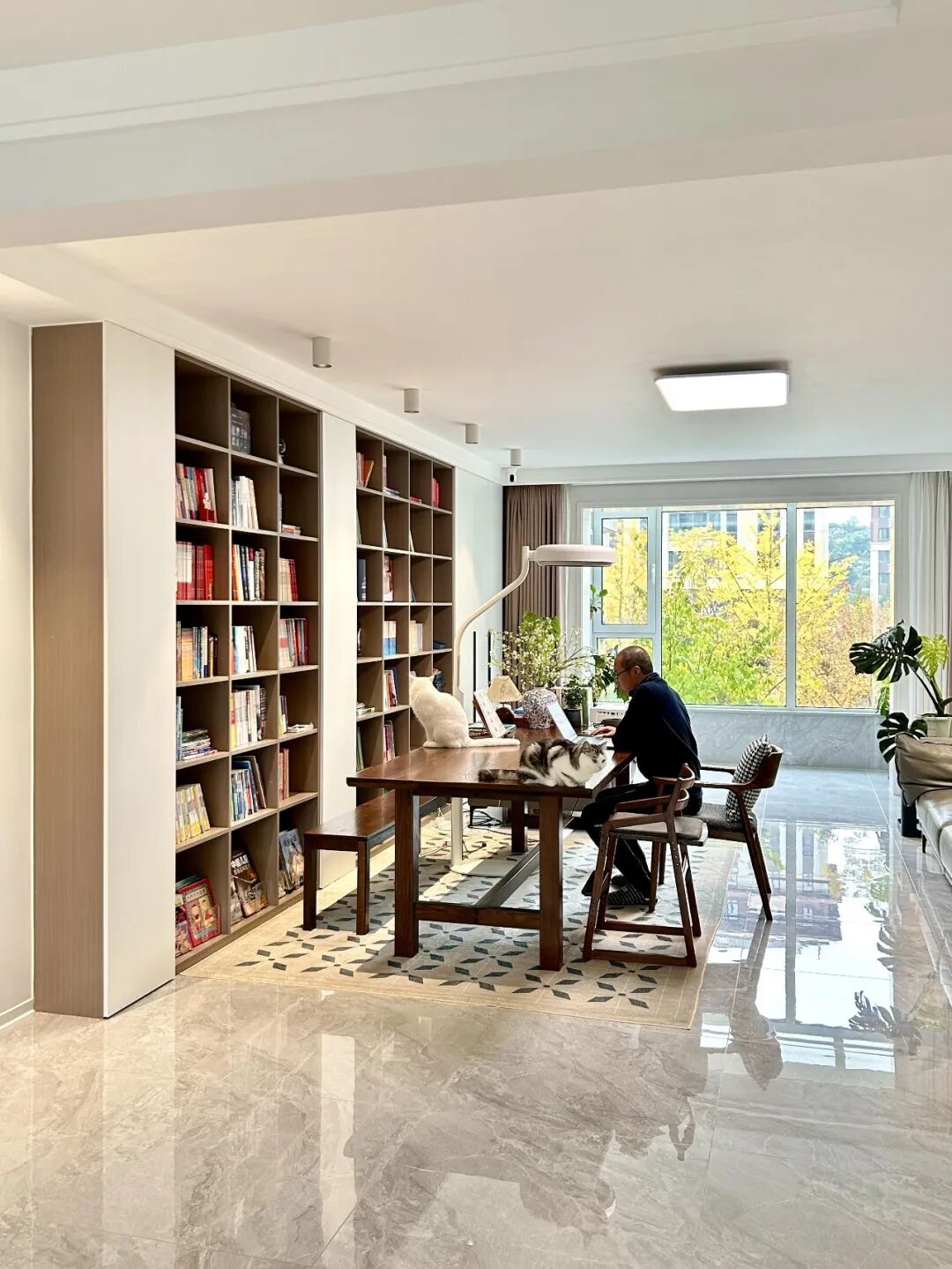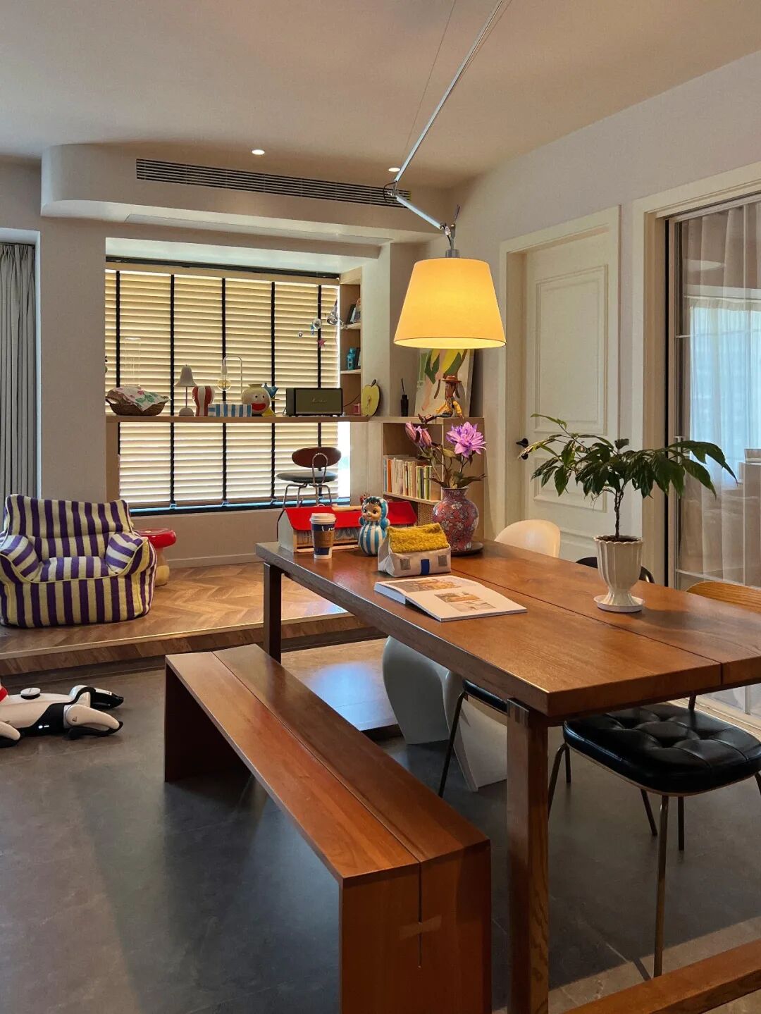 这张大长桌,既是餐桌,又是书桌,还是茶台,更是亲子互动区。