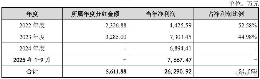 权衡财经iqhcj注意到,2022年-2025年1-9月,公司现金分红合计5611.88万元,2024年度至今未分红。