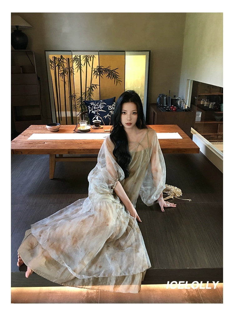 ICELOLLY超好看吊带连衣裙外搭罩衫两件套女夏季独特绝美套装裙子
