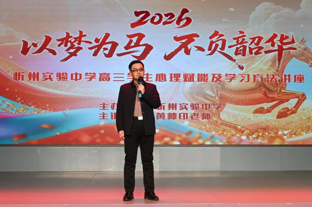 春风浩荡,战鼓鸣响。为帮助高三学子调适备考心态,激发内在潜能,以更加昂扬的姿态迎接高考挑战,3月6日,在高考冲刺号角吹响的关键时刻,忻州实验中学学生成长赋能中心内激情涌动,一场为高三学子拨开迷雾、点燃梦想的专题讲座如期举行。本次活动以“以梦为马,不负韶华”为主题,特邀全国著名感恩教育专家黄帅印老师,为即将奔赴考场的学子们带来一场直击心灵、赋能未来的精神盛宴。这不仅是一次学习方法的传授,更是一次关于成长、担当与梦想的深刻对话。讲座由德育处主任白永亮老师主持。