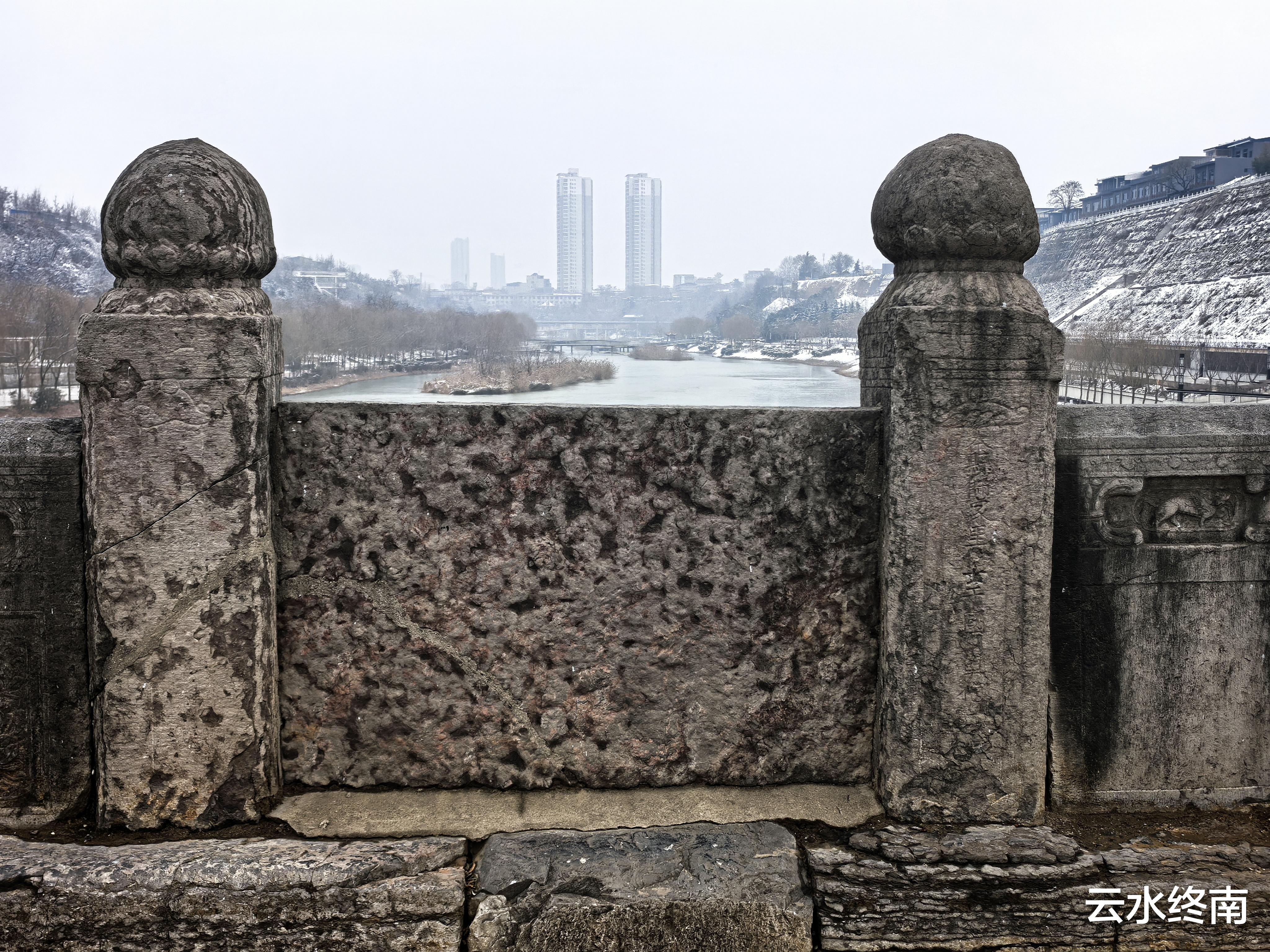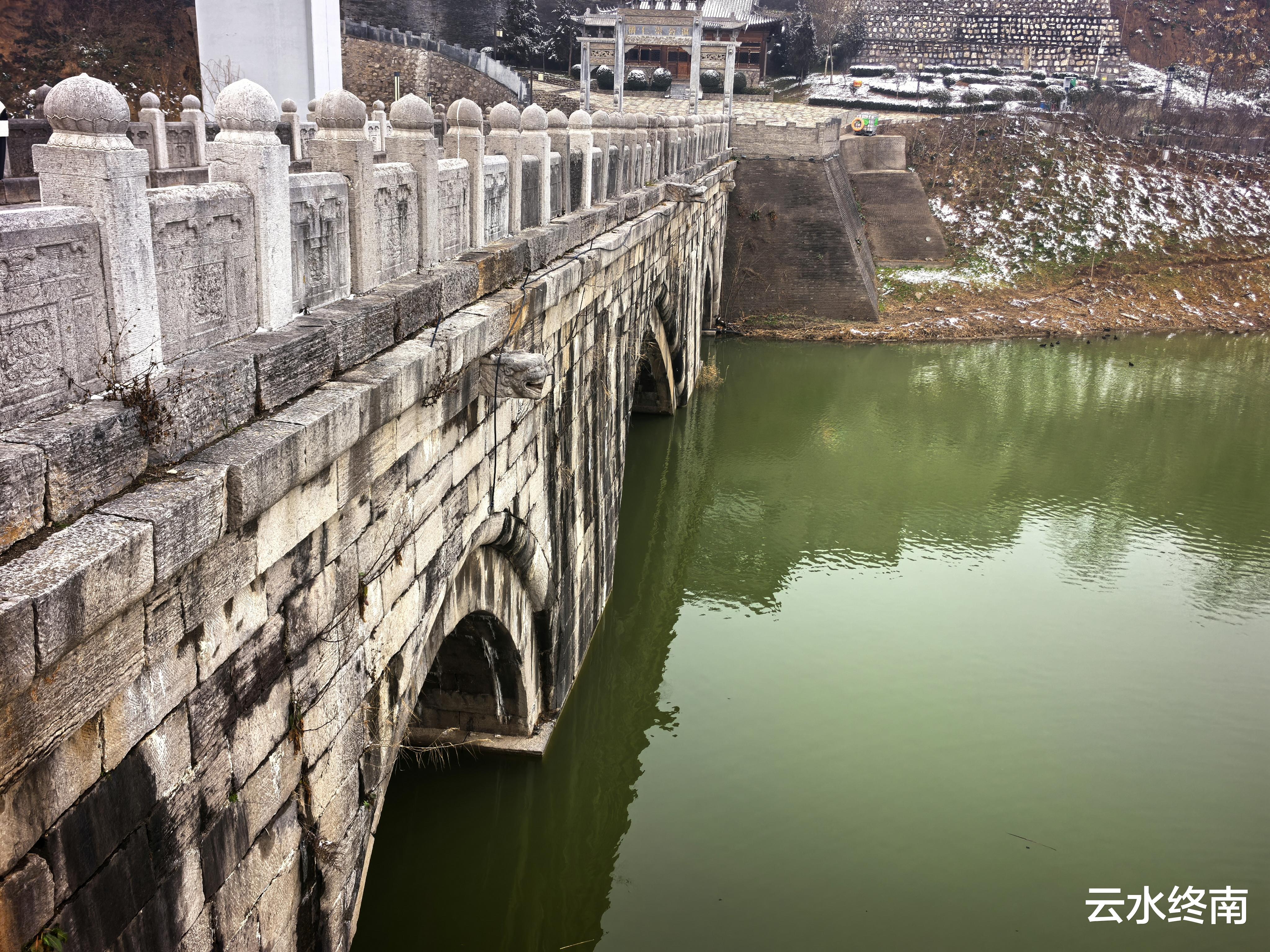 走过一百多米的石桥,走上对面的永清门高大的城楼,回望新旧两座龙桥,“水从碧玉环中过,人在苍龙背上行”。