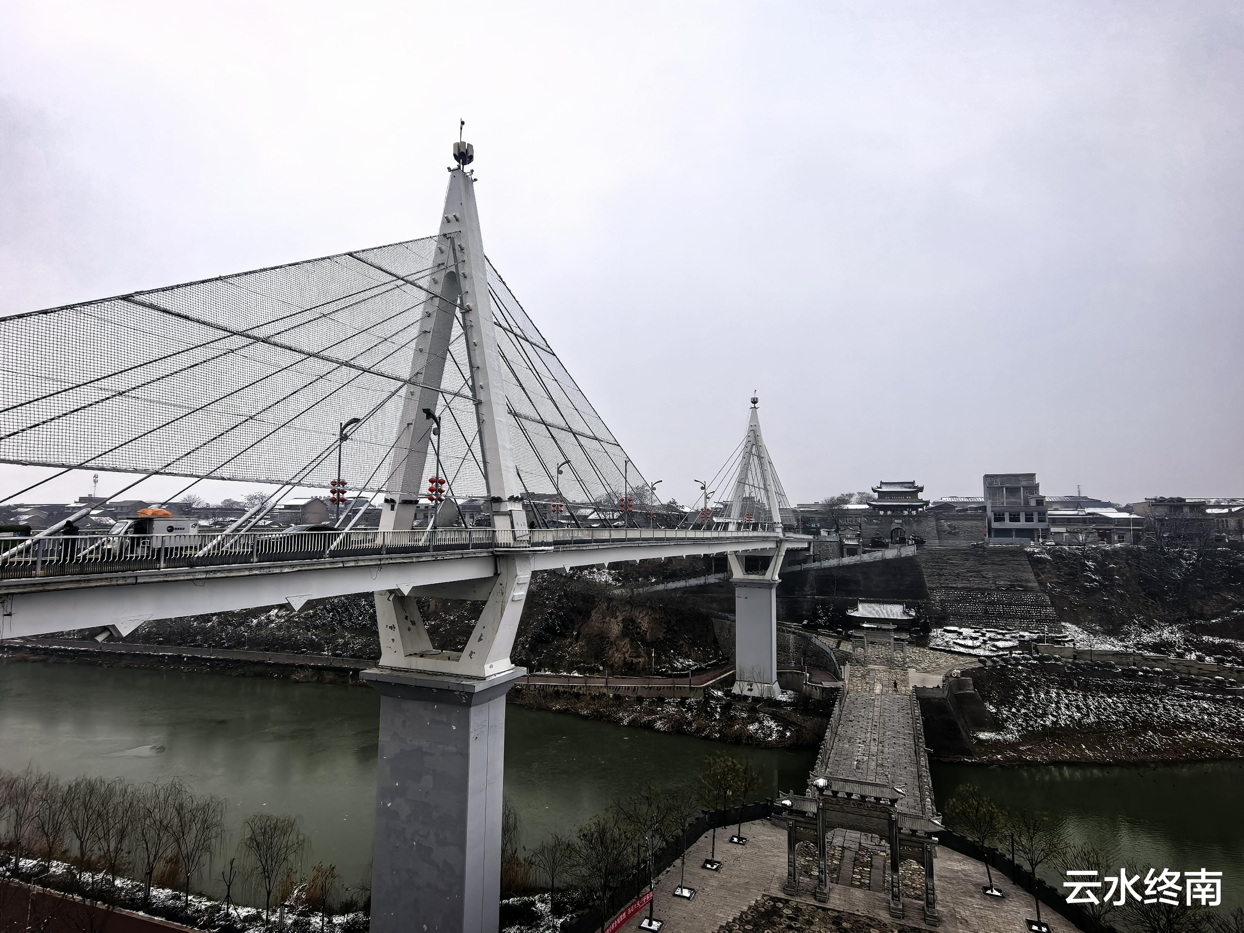 新龙桥是斜拉式平桥,横跨南北。这座桥其实也是建于八十年代的一座老桥,前一段时间才修整完,可以通行小车。
