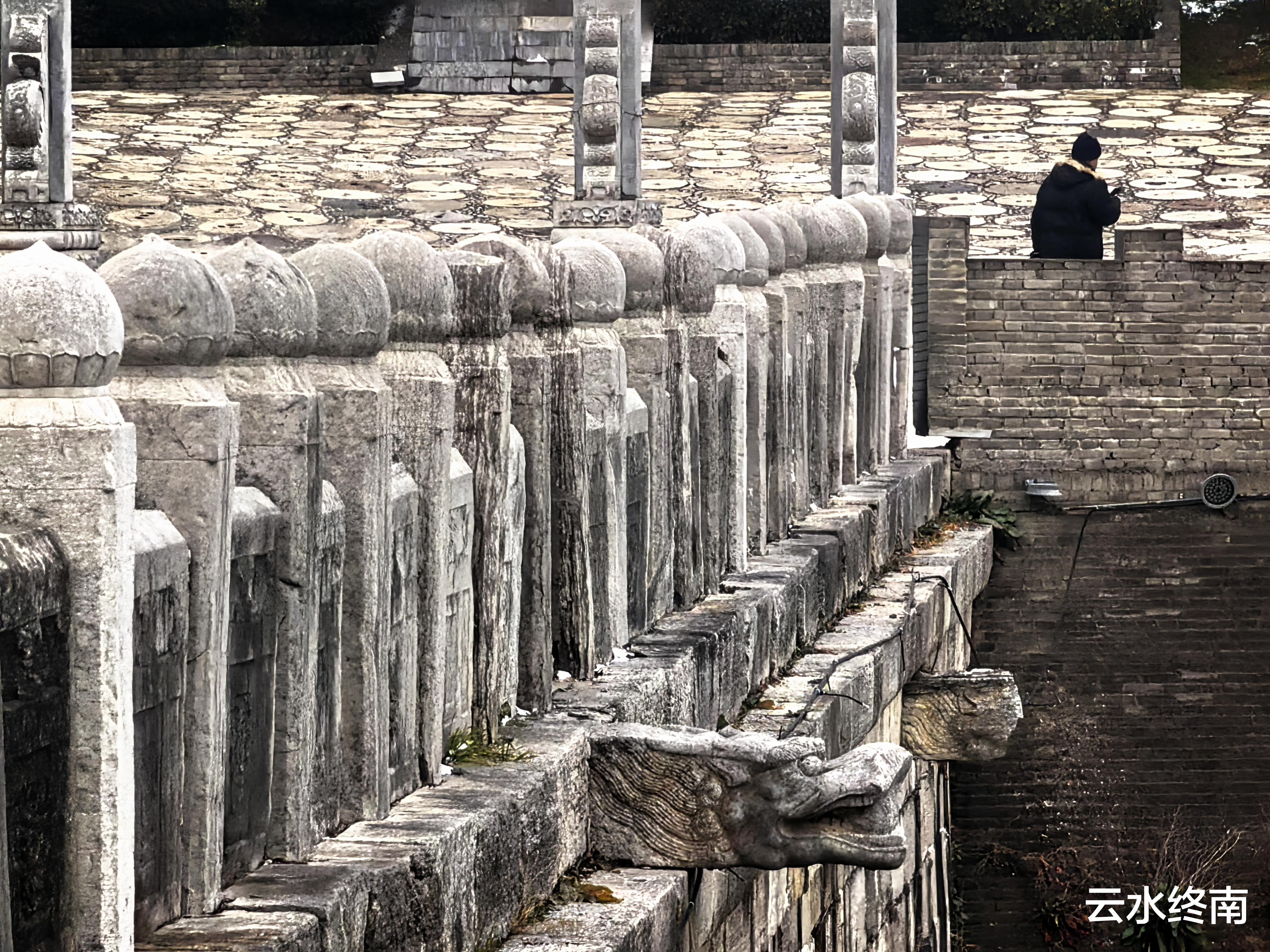石栏外侧雕有龙头龙尾各三,头东尾西,意为以龙驮桥,而且这龙头龙尾与桥面上水道相通,每逢雨天,桥面积水从龙头龙尾喷出,直倾河中,也算是巧妙。