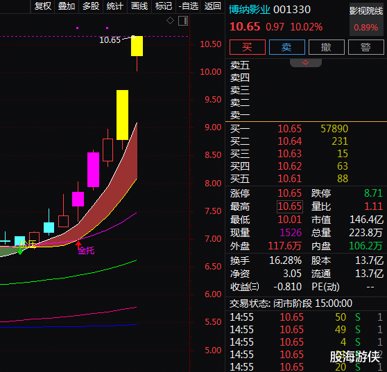 从技术面上来看,博纳影业(001330)该股在板块的带动下,2天2板!2个交易日股价上涨了21.02%!均线呈现多头排列,MACD有继续上扬的动力,主力资金呈现流出状态。