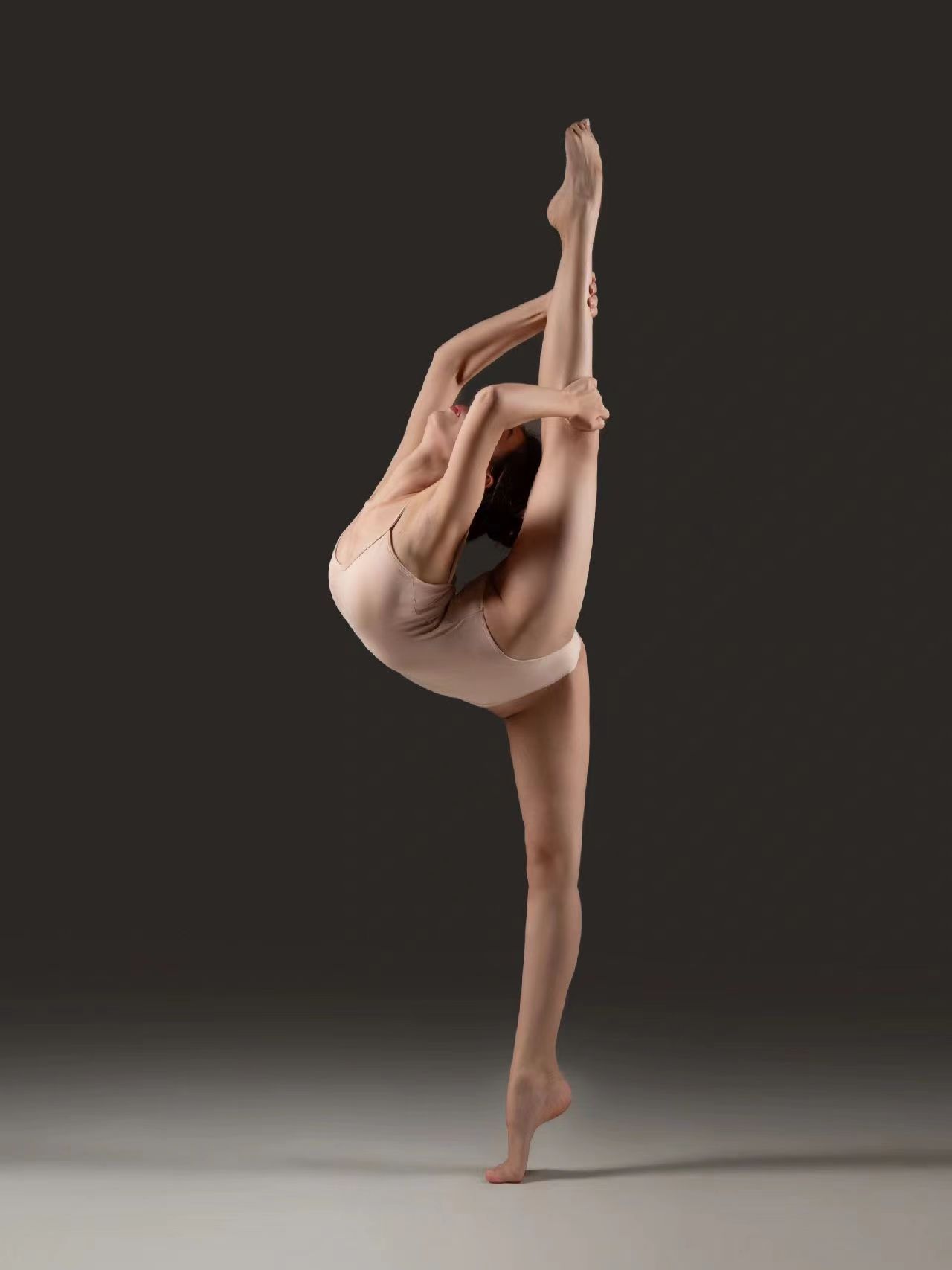 舞蹈生长相清秀,身材苗条,功底深厚,所以这期我们当结合她的脸部来拍,主光源使用柔光箱或柔光伞,提供均匀柔和的主光源,避免硬光造成的阴影。将主光源放置在正前方稍微偏上一点的位置,这样可以柔化舞者的脸部线条,突出她的清秀面容。在侧面设置辅助光源,增强脸部和身体的轮廓感。可以使用反光板或补光灯,增加脸部的光亮度,突出她的皮肤质感。使用背光或轮廓光,勾勒出舞者的身体线条,增加立体感。这种光源可以放置在舞者的背后或侧后方,形成漂亮的轮廓光。
