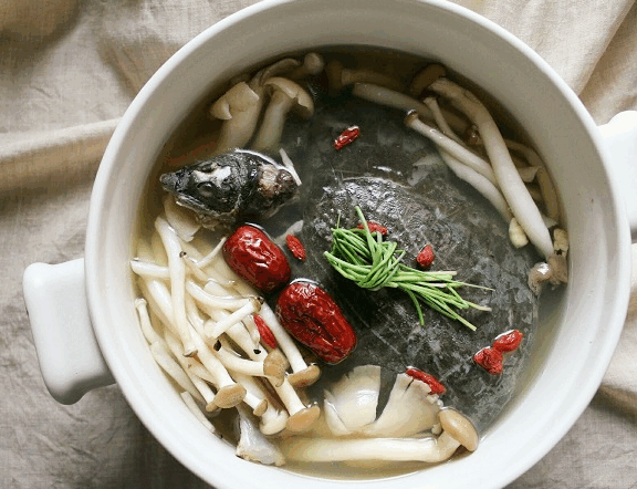 来源:巴国布衣     主料:甲鱼500克     辅料:白牛肝菌(干)30克 鸡枞80克 香菇(鲜)100克     调料:盐10克 味精2克 鸡精2克     制作方法     1.甲鱼宰杀后放血,入沸水中氽一下捞起;     2.刮洗后去颈再刮去裙边及表面上的粗皮,用刀顺着裙边;     3.将其划穿,除去内脏,用水洗净待用;     4.取锅掺入自制清汤,放入甲鱼,先用旺火烧开再用微火炖40分钟;     5.接着放入三菌,炖软后放入盐、味精、鸡精,起锅装入盛器即可上桌。       【野菌烧裙边】