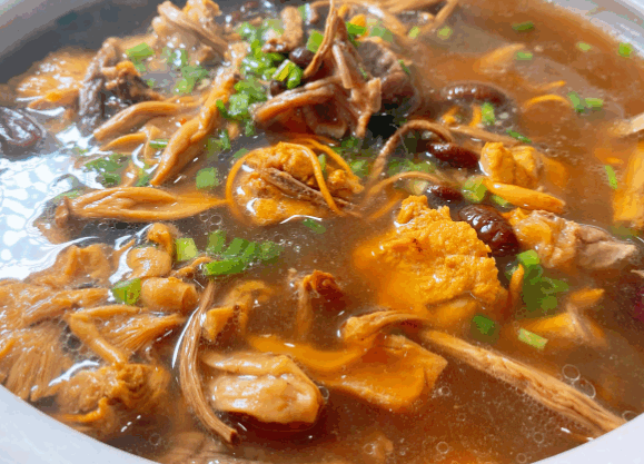 来源:内蒙冷艺赵哥(抖音)     主料:黄瓜花,鸡枞菌。     辅料:蒜末,小米辣。     制作流程:    ①首先将鸡枞菌用清水淘洗干净,挤干水份,起锅烧油油温5成热下入鸡枞菌炸制微黄捞出,    ②黄瓜花摘去根部,然后用清水淘洗干净,沸水捞出过凉,放入盆中加:蒜末,小米辣,盐,鸡汁,白糖,美极鲜,葱油,花椒油,炝拌油,搅拌均匀即可。    【纯鲜鸡枞汤】