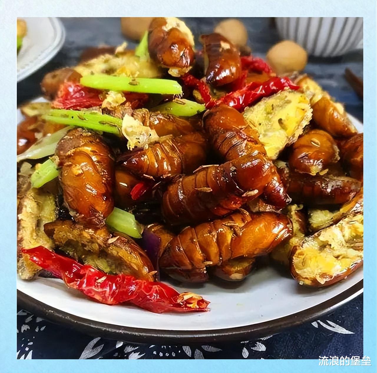 第一种就是我最能接受的蚕蛹,也是东北人能接受的虫子之一,炸和烤的蚕蛹都好吃,但是需要把里面的那个黑色的虫子搞出来,所以一开始挺难接受的,就是因为本身长得就害怕,它里面还有虫子!