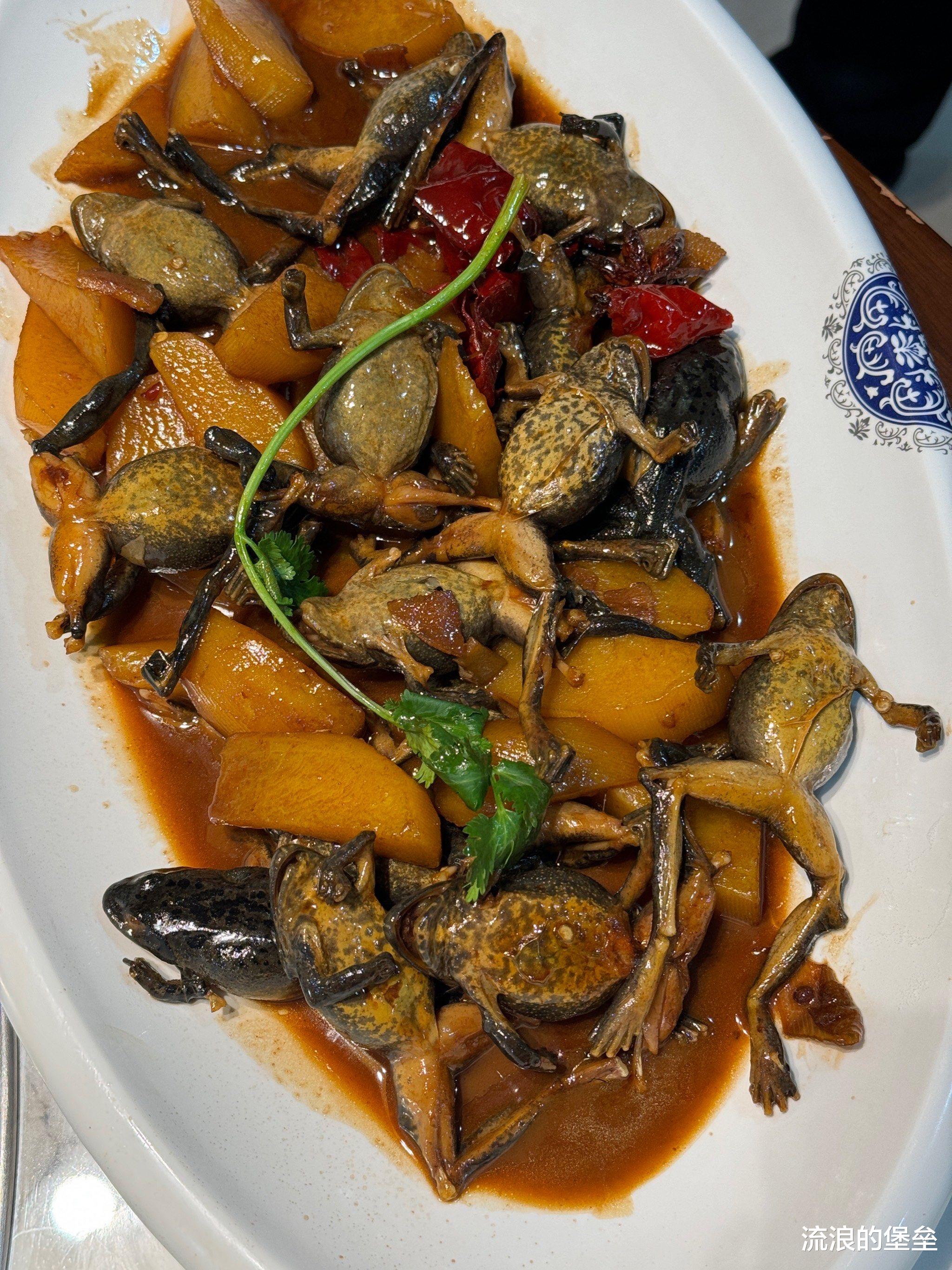 第六个就是林蛙,也就是我们听过的雪蛤油的来源,但是真不敢吃,想到的就是蛤蟆,下不去嘴,但是说林蛙一只挺贵呢,虽然是人工养殖的,但是味道也不赖,比牛蛙健康多了,一个据说有药用价值,一个是可能有寄生虫!