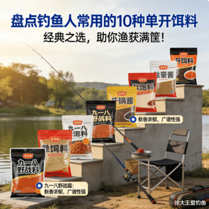 钓鱼选饵料,很多人都陷入“越多越好”的误区,总觉得搭配的饵料种类越多,诱鱼效果越好,结果要么比例失衡导致没口,要么操作复杂手忙脚乱。其实对大多数钓友尤其是新手来说,单开饵料才是王道——操作简单、状态稳定、适配场景广,选对一款经典单开饵料,就能应对大部分作钓情况。今天就盘点10种钓鱼人常用的经典单开饵料,从味型、适配场景到使用技巧全讲透,都是经过实战验证的“硬通货”,帮你避开饵料选择的坑,轻松提升渔获。