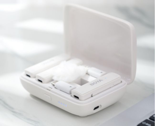 这款麦克风采用轻巧紧凑的设计,单只仅重约12克,佩戴轻松无感,适合长时间使用。搭载ENC环境降噪技术,可精准拾取人声并有效抑制环境杂音,确保录音清晰纯净。续航方面,单次充电可连续使用8小时,搭配充电仓后续航更长达24小时,足以满足全天候拍摄需求。充电仓内置智能数显屏幕,可实时显示剩余电量;支持APP智能控制,操作更加便捷。配备Type-C接口,支持边充边用,进一步提升了使用的灵活性与稳定性。