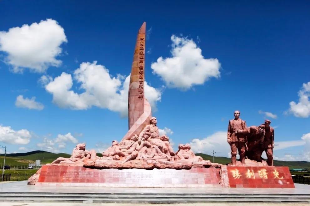 2、班佑:树有“胜利曙光”纪念碑,以纪念700多名红军烈士。他们历时八个月,爬过雪山草地,却因伤痛饥渴再也没有一丝力气趟过班佑河,背靠背坐在河滩上“阵亡”。这是长征过草地时有史料记载牺牲人数最多的一次,这群平均年龄连20岁都不到的战士,用生命在为一个全新的中国铺路。