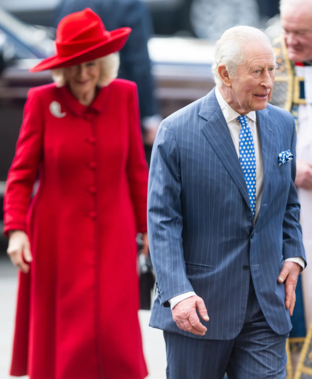 3月9日是英国一年一度的英联邦日,查尔斯夫妇一起抵达威斯敏斯特大教堂出席活动;国王还是一如既往的绅士,佩戴蓝色印花领带清新养眼,王后一身红色风衣下车成焦点,还新解锁了一枚棕榈叶胸针,新造型很是优雅。