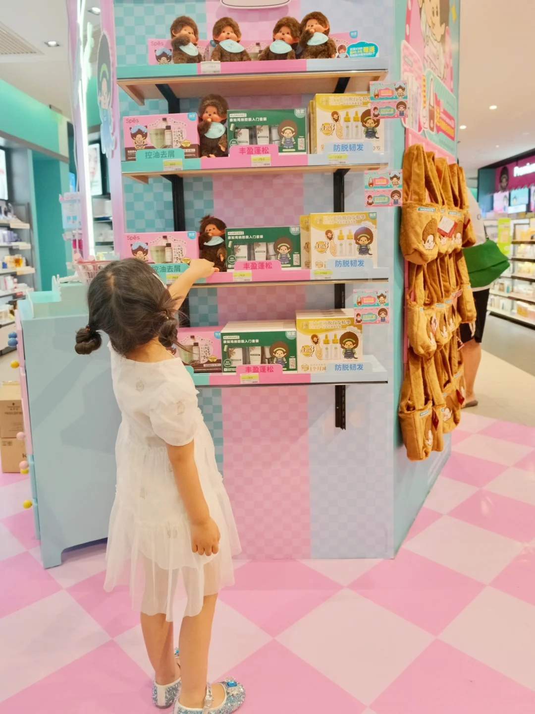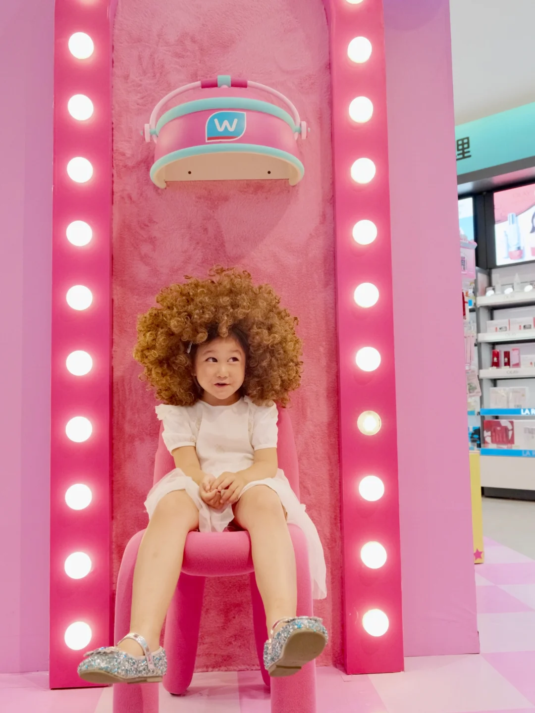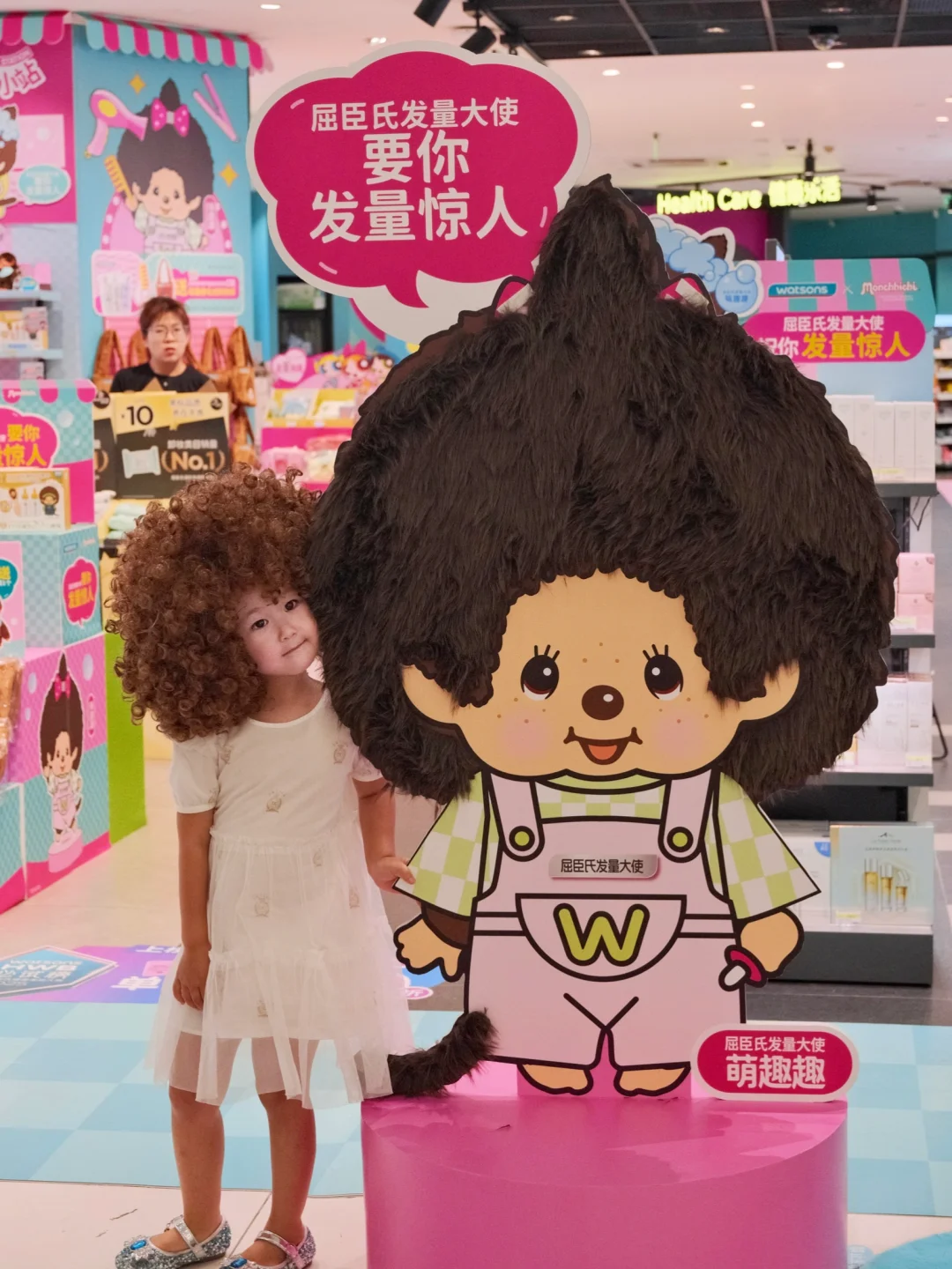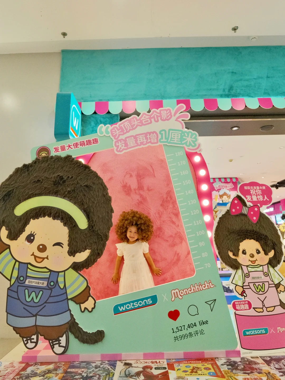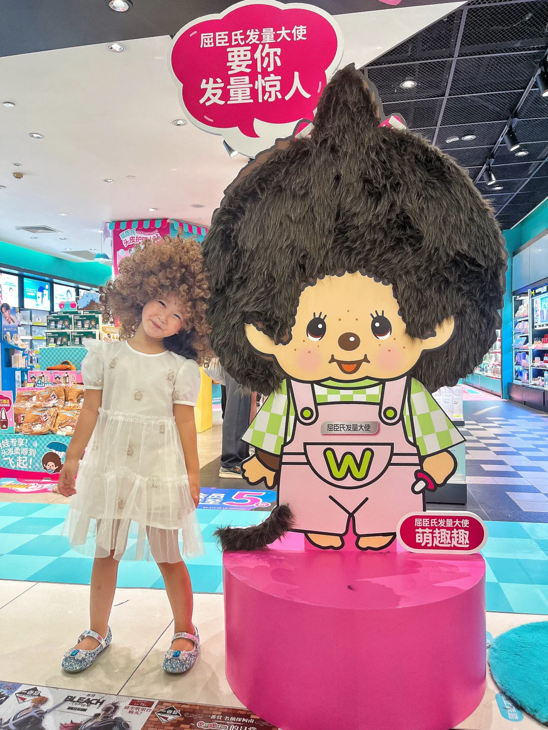 周末带娃逛商场,老远就被屈臣氏这个 爆炸头+蝴蝶结 的萌物吸引住了!