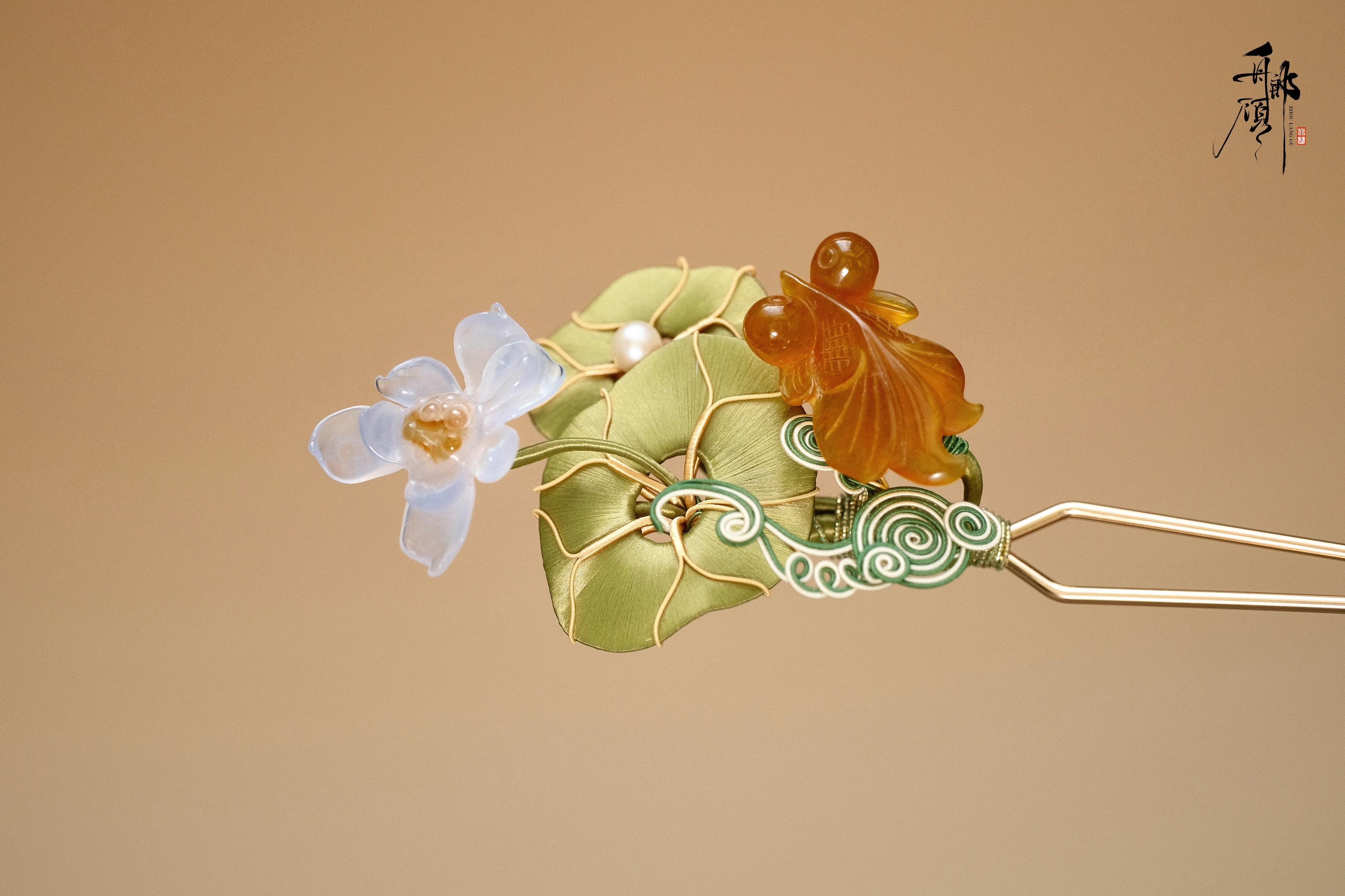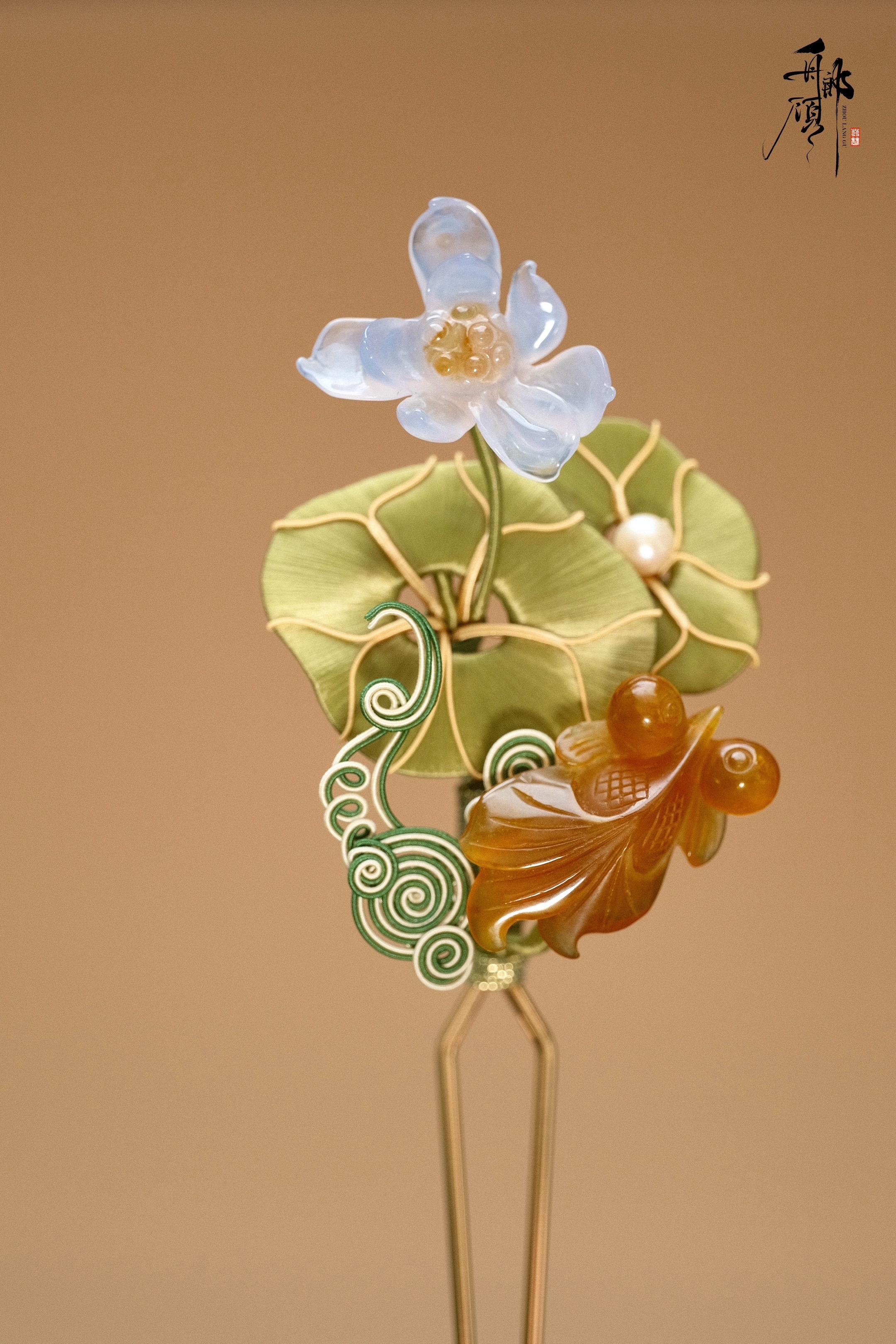荷风摇影,金鱼曳尾搅碎一池夏光。当缠花遇上天然石。