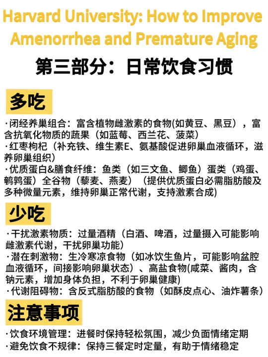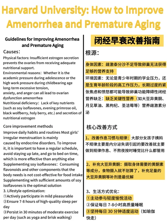 哈弗大学迄今为止帮助闭经早衰蕞块的方法