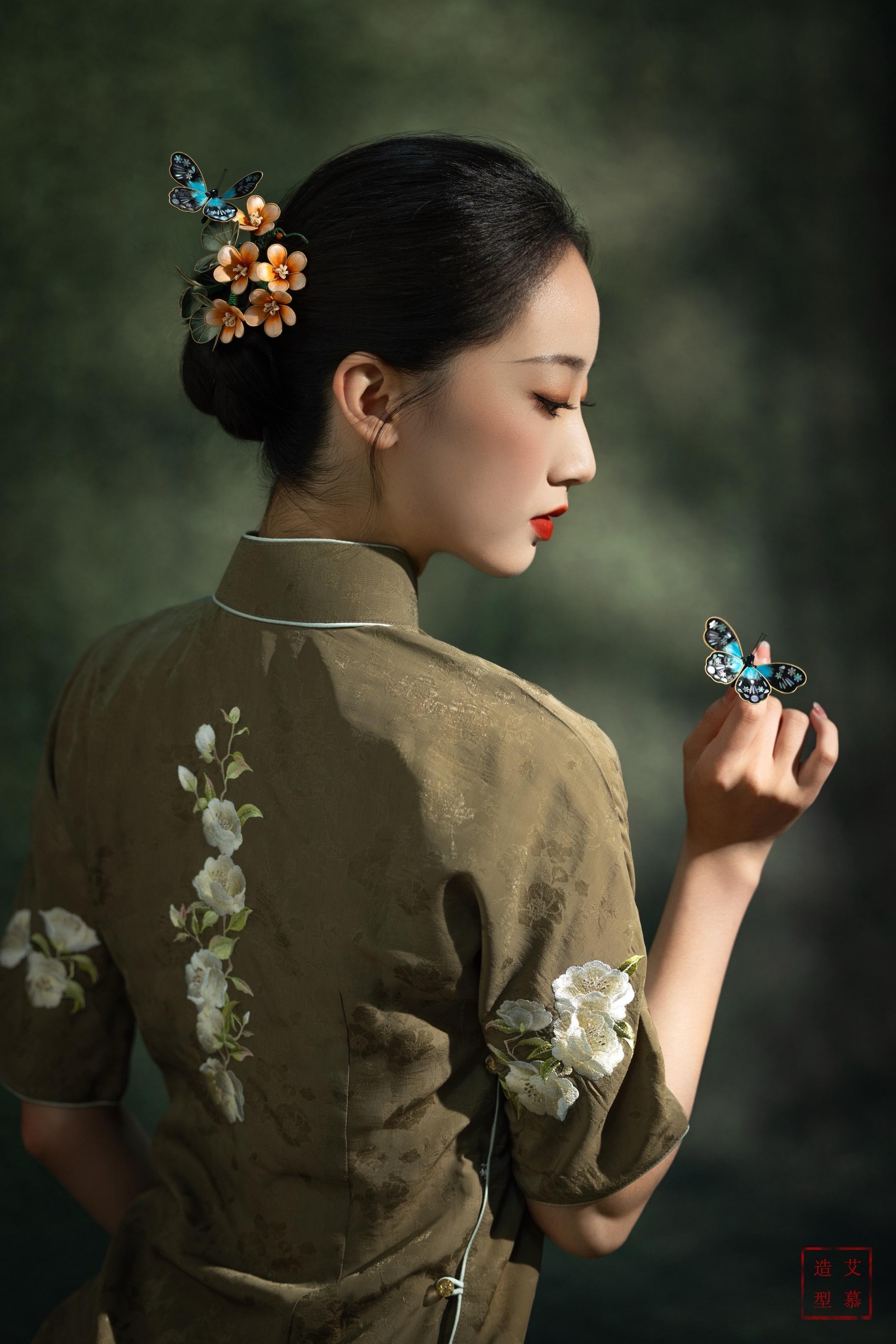 蝶落指尖,美人垂眸。有人说,蝴蝶是自由的象征, 而酢浆草,是幸运的隐喻。 一组美到失语的发簪佩戴图。