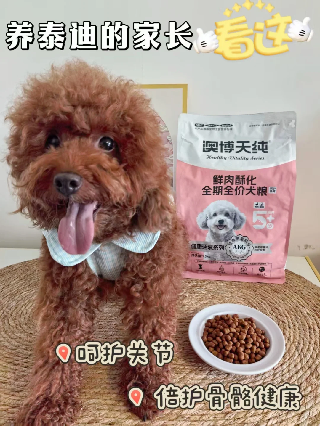 挖到澳博天纯健康延衰犬粮,专门给5岁+设计的!AKG 是 “能量小马达”,给细胞补能还护心,软骨素这些关节好搭档,吃了一段时间,狗子又能蹦跶着接飞盘啦~
