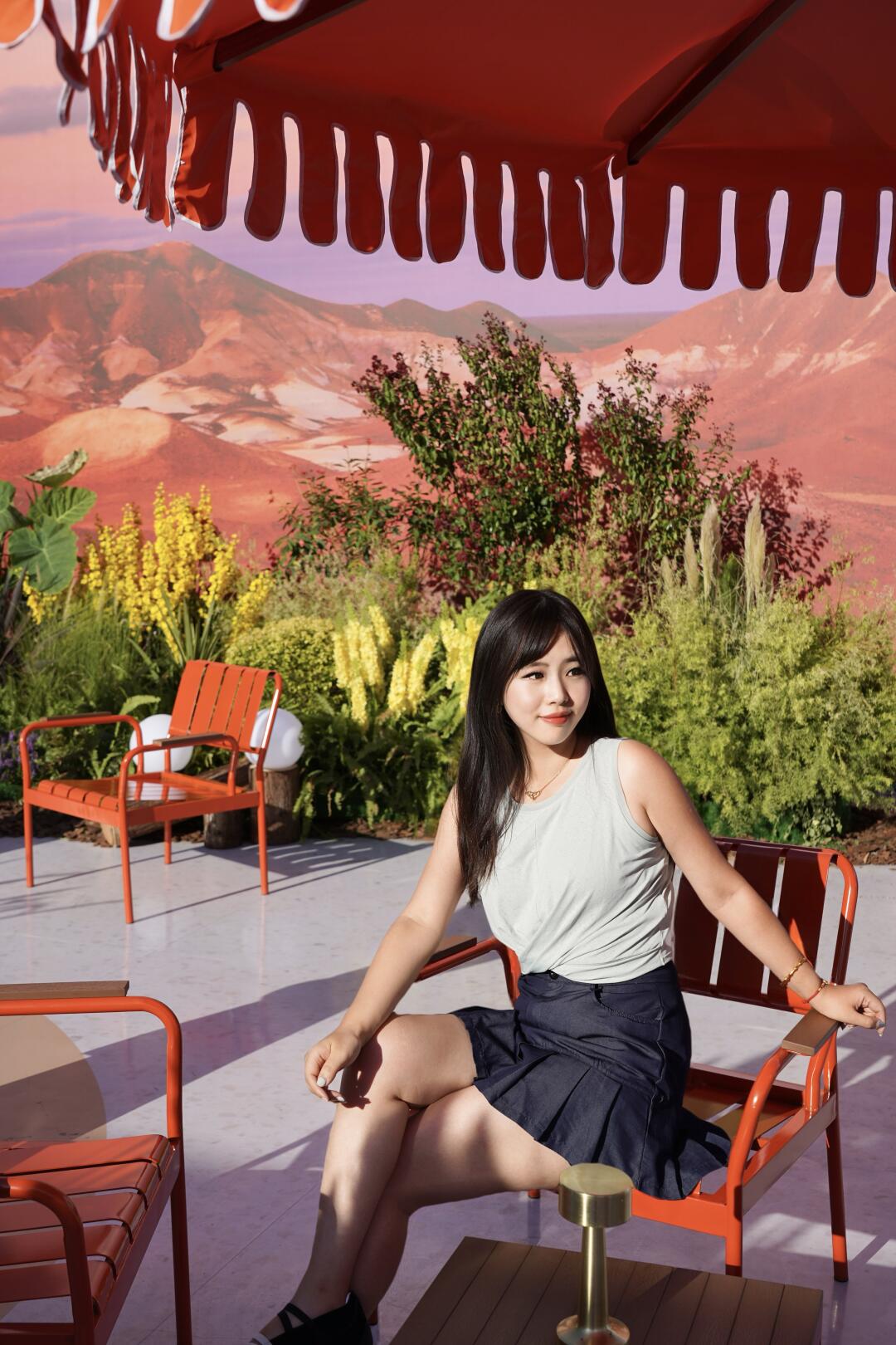 橙色的桌椅🧡粉色的汽车💚绿色的植物🌳还有澳大利亚风景作为背景…真的好美!午后的阳光照在脸上,让我有种置身澳大利亚的错觉!