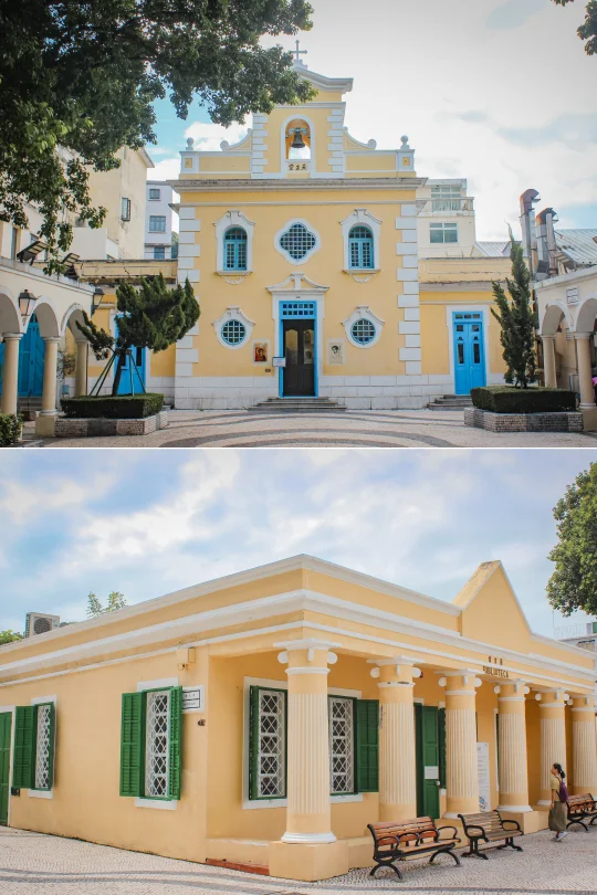 ✅坐巴士两站回到路环码头附近,沿着小路走,可以打卡安德鲁饼店,咖啡店,十月初五马路,黄色天主教堂,然后进路环图书馆凉快一下。中午在这里的网红面馆午餐后bus到氹仔。