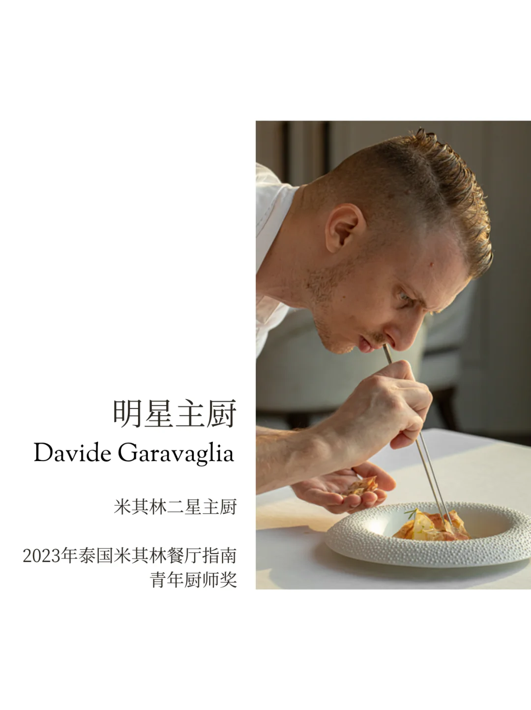 湄南河畔,城市风味的漫游 于 米其林二星餐厅 Côte by Mauro Colagreco 点燃感官的星火 米其林二星主厨Davide Garavaglia 以现代手法演绎里维埃拉风情 跨越文化与地域 将热带与地中海味觉印记融入食材本味 将Daurikus Kaviari鱼子酱的咸鲜 融合鲷鱼的柔嫩鲜美 伊比利亚黑猪肉佐以地中海水果香甜 黑芝麻与炙烤地中海吞拿鱼腩交织 馥郁与鲜嫩谱写味蕾诗篇 美馔,以食材之言 抵无界风味