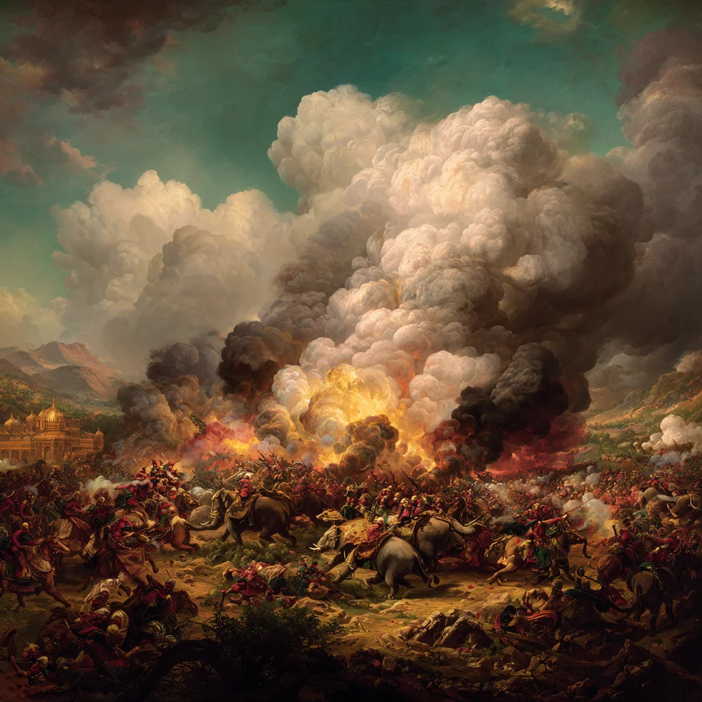 技术影响:火炮的使用标志着印度战争进入火药时代,削弱了传统战象与骑兵的统治地位。