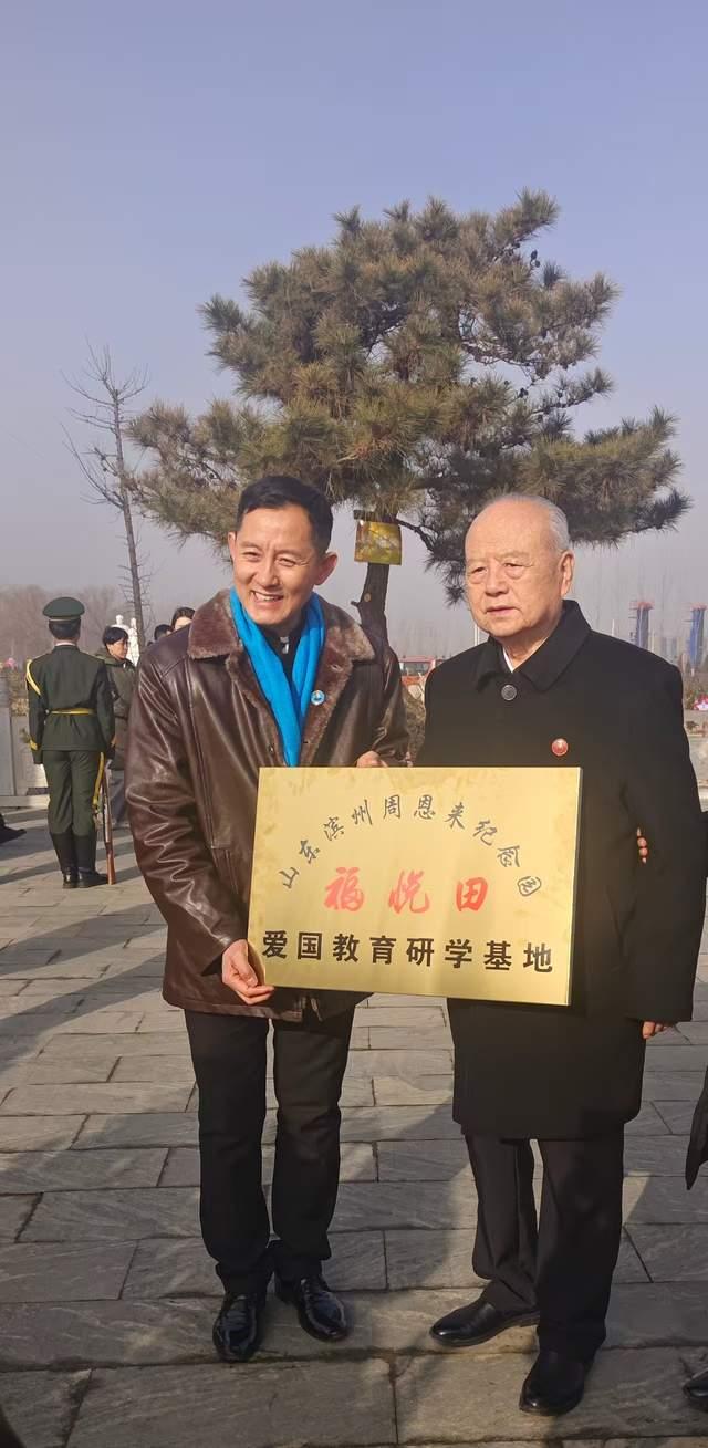 捐赠过程中得到了周总理亲属大鸾翔宇基金会周秉德创始会长、周秉和主任、周秉宜阿姨、原中央警卫局周总理卫士高振普将军、罗青长之子罗援将军、沈清理事长、周戎、警卫局周学茂老师、曹文斌主任、杨超利校长、周铁南、吕玉萍、孙立宁、陈辰、王慕周、史淑楠、施汉章、鲁海员、杜军亭、赵景科等领导及亲友团见证中授予“山东滨州周恩来纪念园 福悦田 爱国教育研学基地”!在此作为代表也特别感谢领导和亲友们鼓励支持帮助给予宝贵的奉献机会!