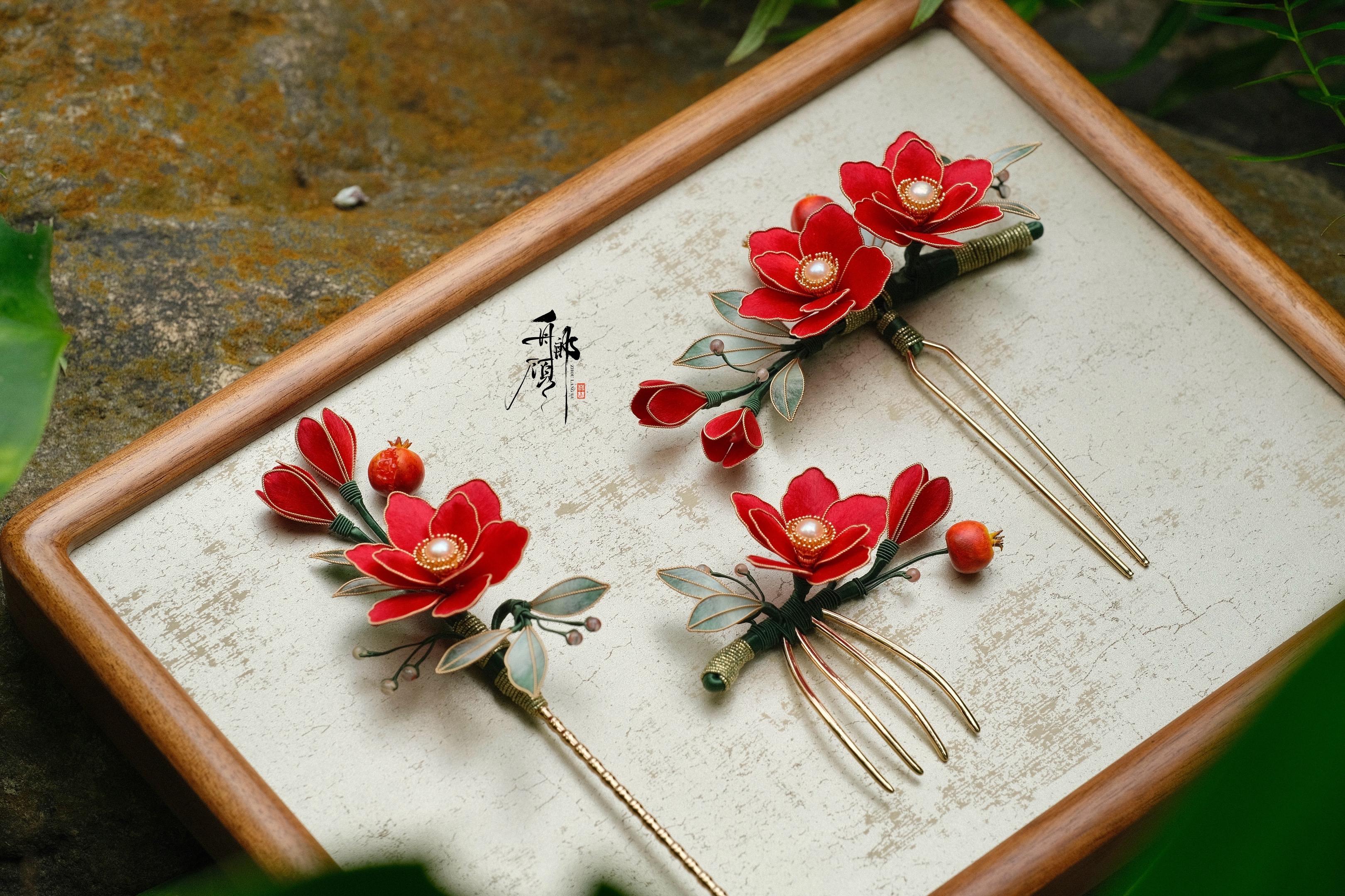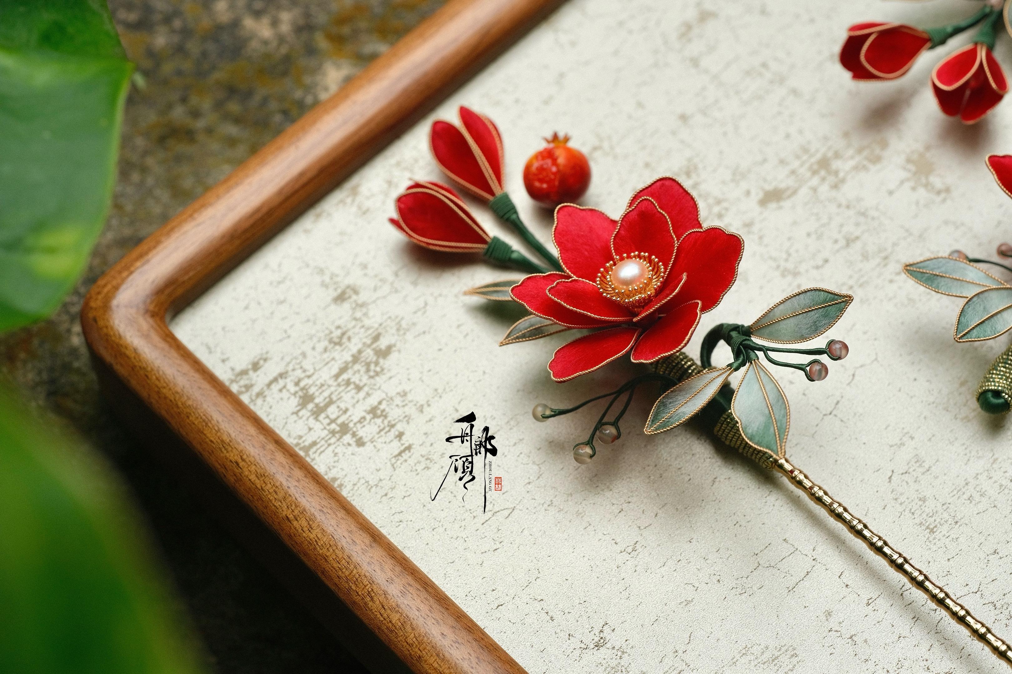 把压弯的南枝,映山的榴火……和整个盛唐的黄昏, 都别在髻间。