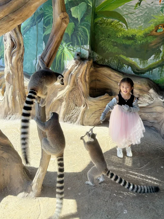 ✔️我们入住的是雨林动物房,房间里就可以看到环尾狐猴~小朋友兴奋极了,在窗口看了好久😅而且还能和环尾狐猴互动(雨林动物房专属哦),不过需要提前预约