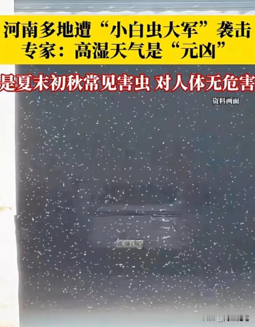 近日,河南多地市民出门时纷纷发现,空气中飘着成群结队的“神秘小白虫”,一不小心就糊一脸,甚至钻进眼睛、嘴巴,让人不胜其扰。 这白色飞虫到底是什么?来听听气象和农业专家怎么说。 原来,这种虫子的学名叫“白粉虱”,并不是什么新物种,而是夏秋之交常见的害虫。之所以近期数量暴增,跟河南持续降雨、空气湿度大、温度适宜密切相关——简单说,最近这天气,简直就是白粉虱的“狂欢温床”。 8月下旬以来,河南多地进入白粉虱高发期,不少网友吐槽:“出门一趟,跟虫撞个满怀”“晾个衣服都能沾上一片”。目前,当地已启动专业防治措施,全力降低虫害影响。 好消息是,这类虫子对人体并无直接危害,不会叮咬也不会传播疾病,主要对蔬菜、花卉等植物造成威胁。随着天气转凉、湿度下降,它们的数量也会逐渐减少。 大家短时外出可佩戴眼镜/墨镜、帽子,避免虫子进入眼睛;回家后及时洗手、洗脸,衣物晾晒时最好避开虫群高发时段与区域。 总之不必恐慌,小白虫只是“天气限定体验”,凉爽的秋天已经在路上啦!郑州白色小虫 河南白粉虱
