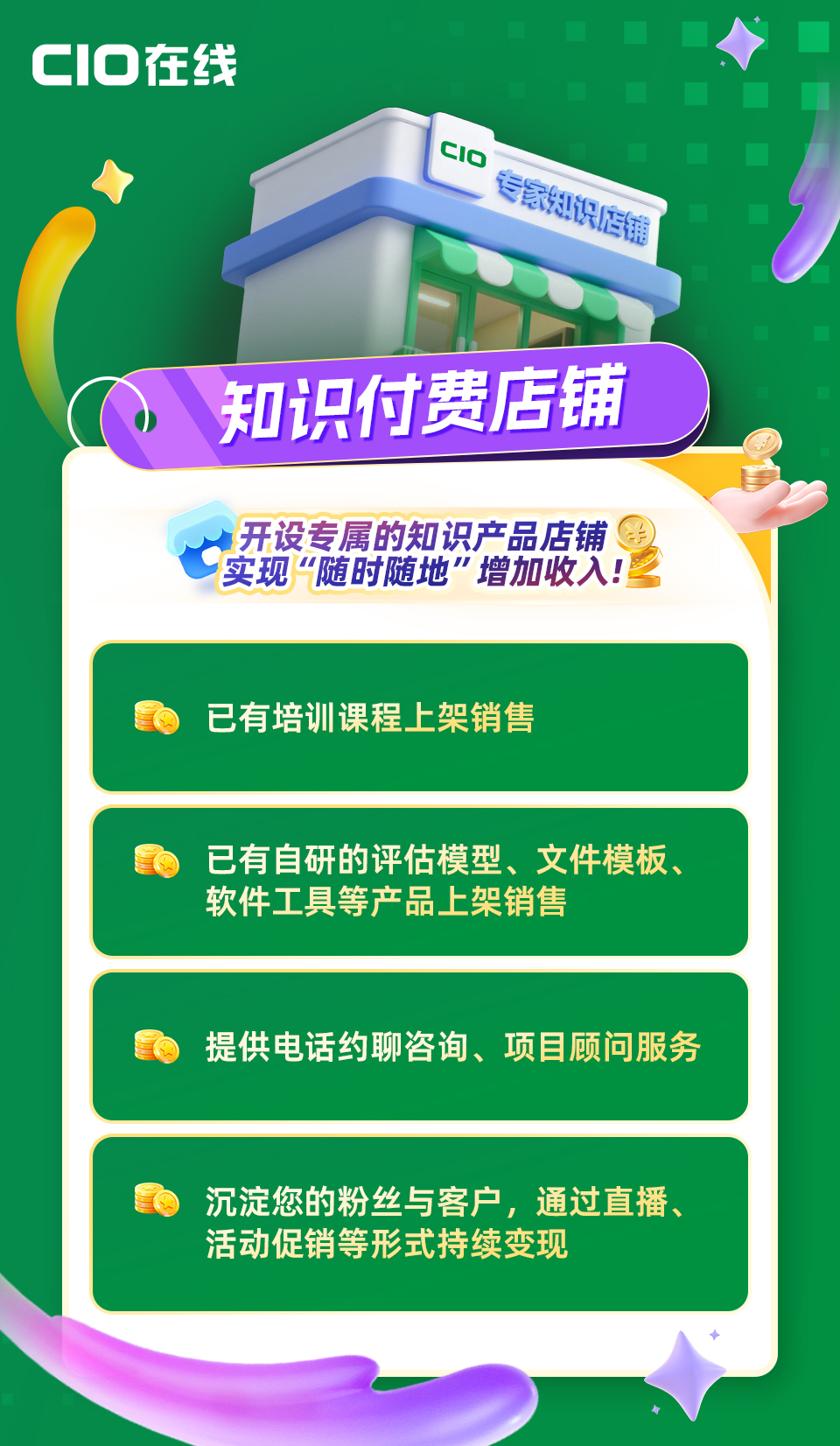 将知识转化为产品,让专业被看见、被需要、被付费。联系入驻,打造您的个人IP、实时变现!