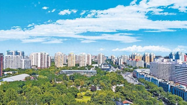 2025年,北京常常可见蓝天白云的晴好天气。从丰台区方庄高处远眺,蓝天白云与片片绿荫相映,景色宜人。(邓伟摄)